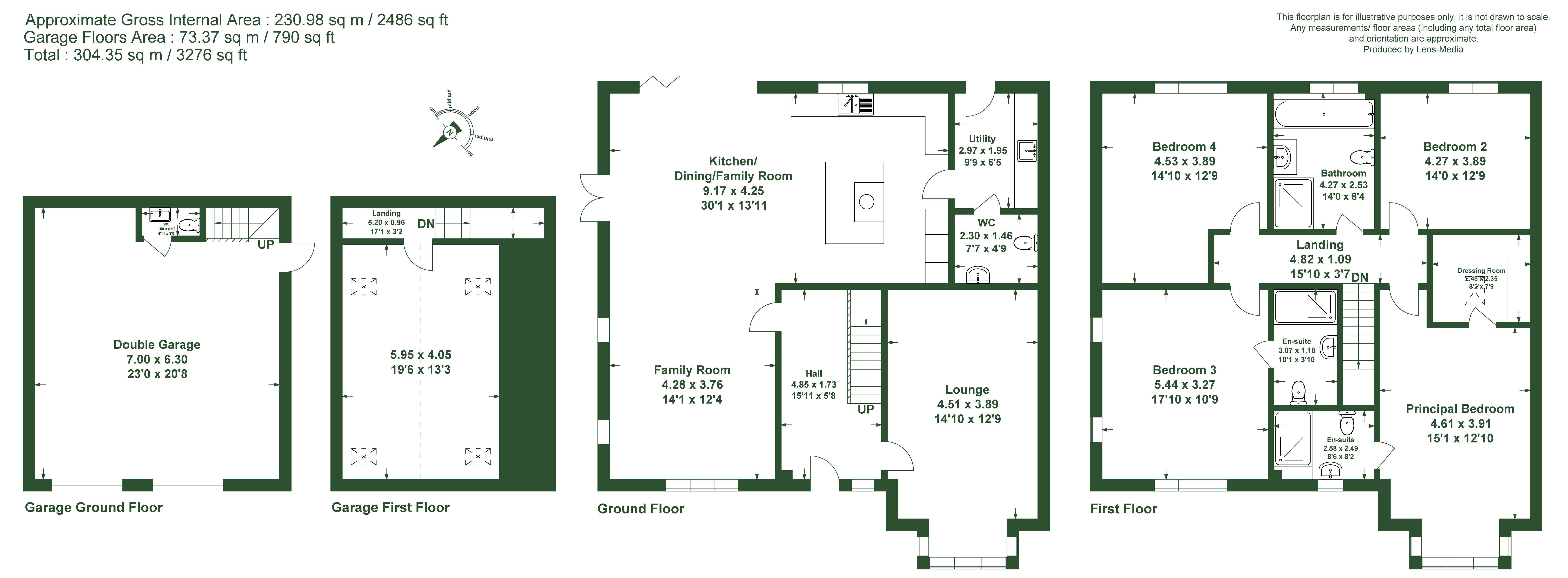 The stairs rises from the entrance hall up to the first floor where there are four bedrooms in total. The bedrooms are distinctive with some vaulted ceilings giving a real contemporary edged and a wow ! The principal bedroom has an ensuite and a dressing room. This enjoys the impressive windows to the front. The guest bedroom also has views out to the front and includes an ensuite. The remaining two bedrooms have views overlooking the rear gardens. These bedrooms are served by the family bathroom.