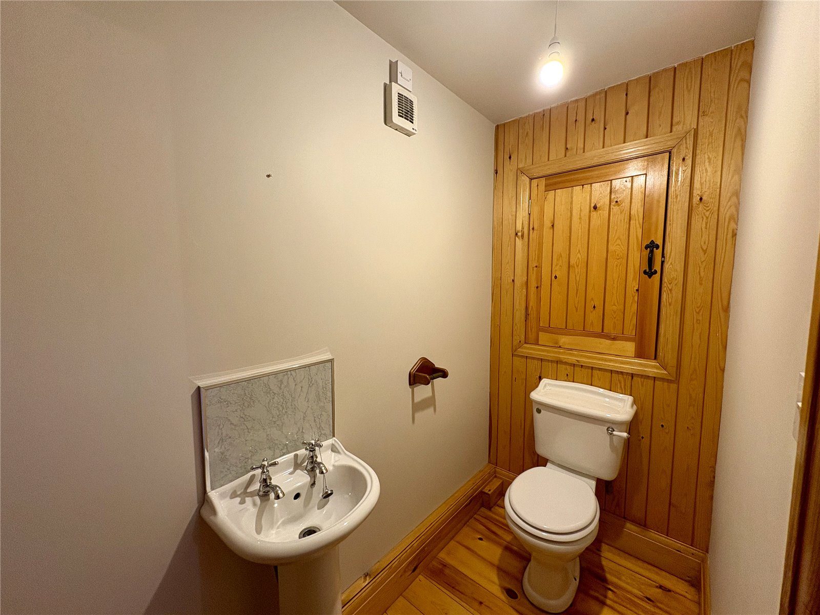 Downstairs there is a generously proportioned ground-floor double bedroom featuring a private en-suite bathroom with a shower, w.c. and wash hand basin.