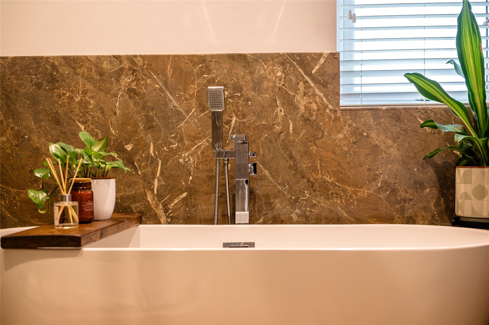 The living room is a delight with its bay fronted windows and feature fireplace, providing that cosy feel to relax and enjoy with family. The entrance hall leads down to the heart of the home the expansive open plan kitchen/diner, including a range of integrated appliances to include oven, grill, dishwasher, Quartz worktops, five ring gas hob with stainless steel extractor over and breakfast bar to seat four. Sliding UPVC doors overlook the delightful private garden. The functional utility room off the kitchen/dining room completes the downstairs with the whole of the ground floor benefitting from underfloor heating.