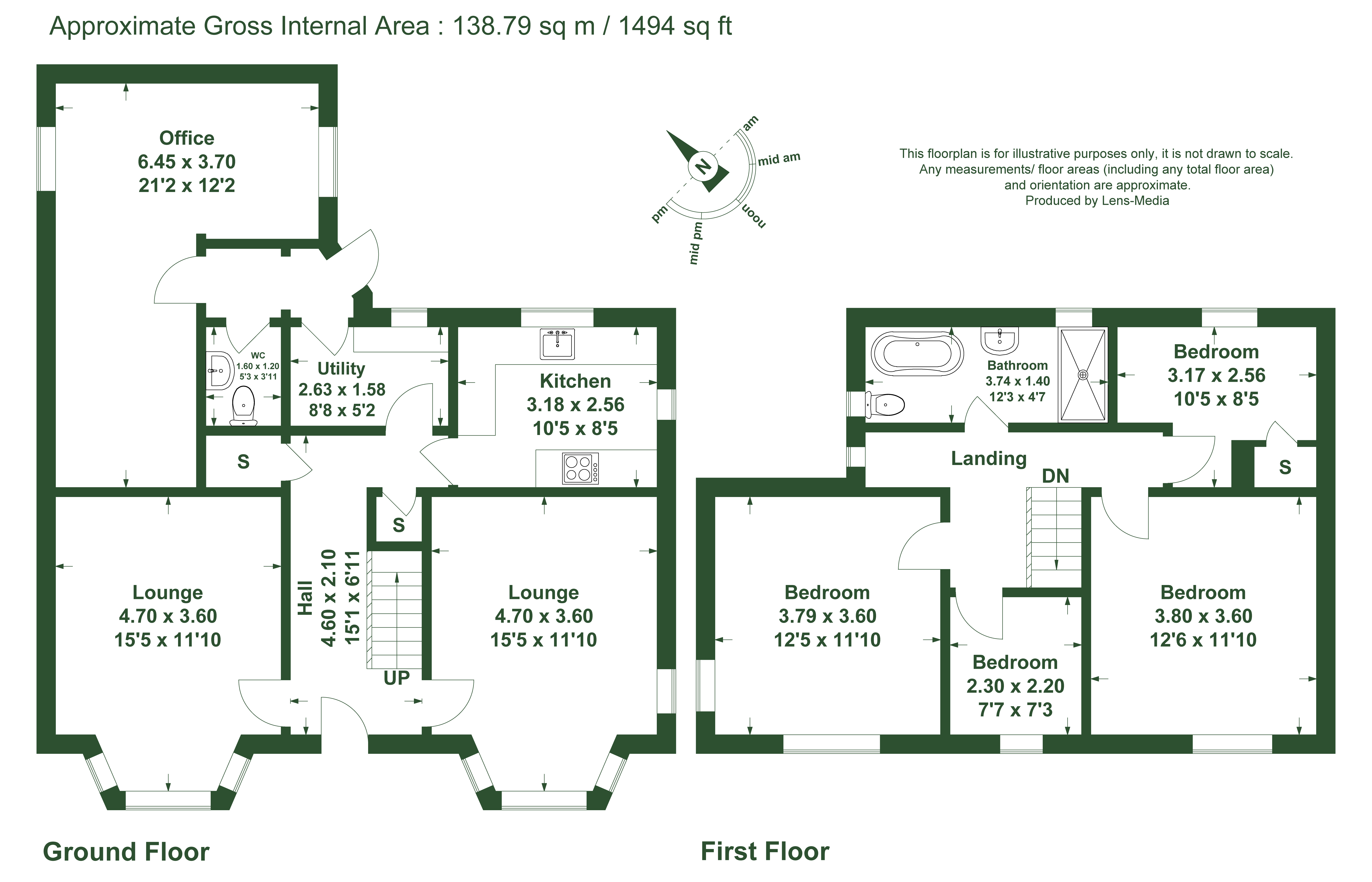 To the first floor are four good sized bedrooms and a family bathroom. The family bathroom has a bath, separate shower cubicle, hand was basin and WC.