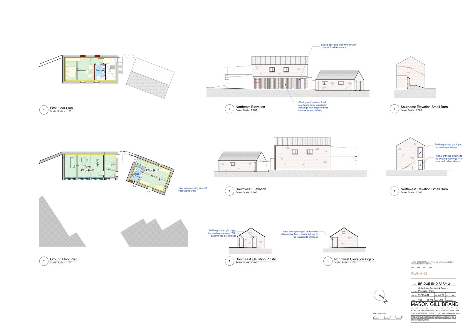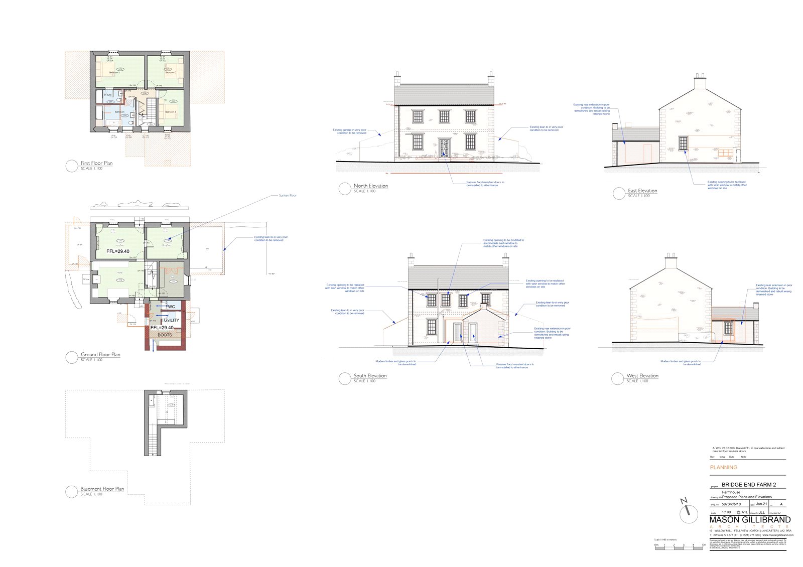 The farmhouse (166.5 sq m) offers exceptional potential for refurbishment, with accommodation including a utility area, boot room, kitchen, living room, dining room, study, three bedrooms (one ensuite) and a house bathroom. Adjacent is the charming former cart shed and piggery (86 sq m), offering full planning consent for conversion - a gym/workspace on the ground floor and an ensuite bedroom above. The planning also offers flexibility to be repurposed to suit your individual preferences, such as a self contained annex or guest suites. A separate detached building with a study and WC provides the ideal home office. These plans have been created to maximise both space and potential.