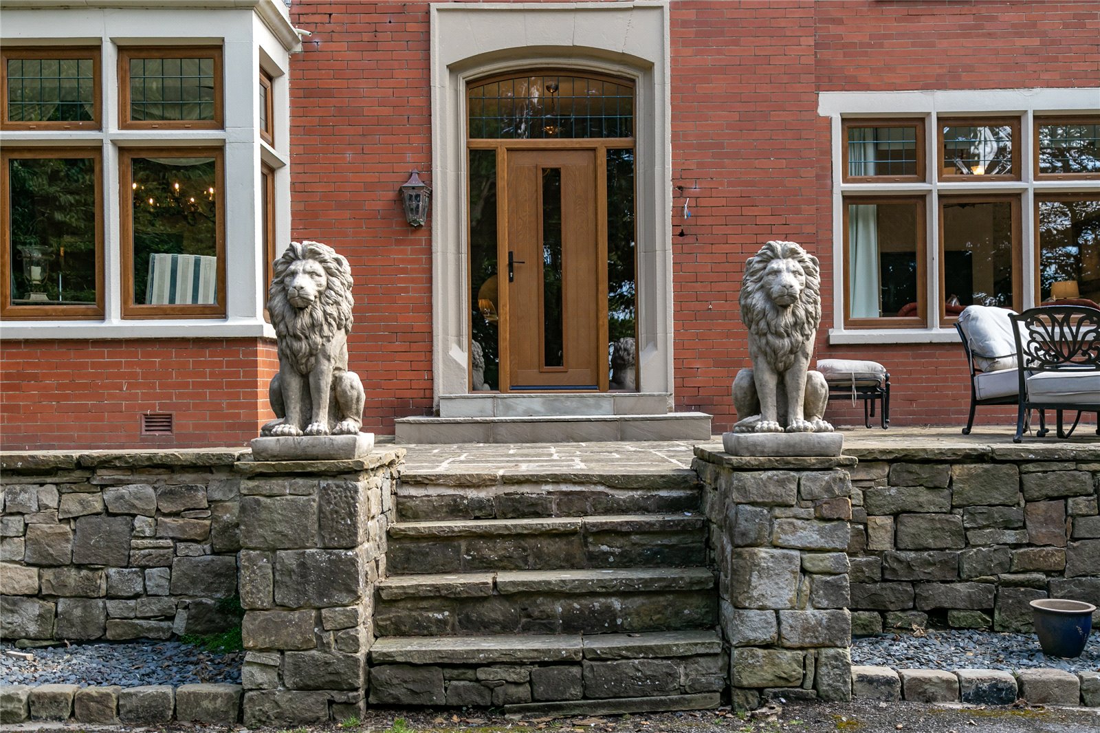 Directions : Once you leave the M55 at J3, take Fleetwood Road (A585) before turning left onto Garstang New Road (still the A585). Turn right onto Mains Lane and then left at the traffic lights at Shard Road (A588), continue to the roundabout and go straight across onto Bull Park Lane. Park Hill is located on the left, curved red brick walls flank the substantial gates and are inset with a pair of carved name stones.
