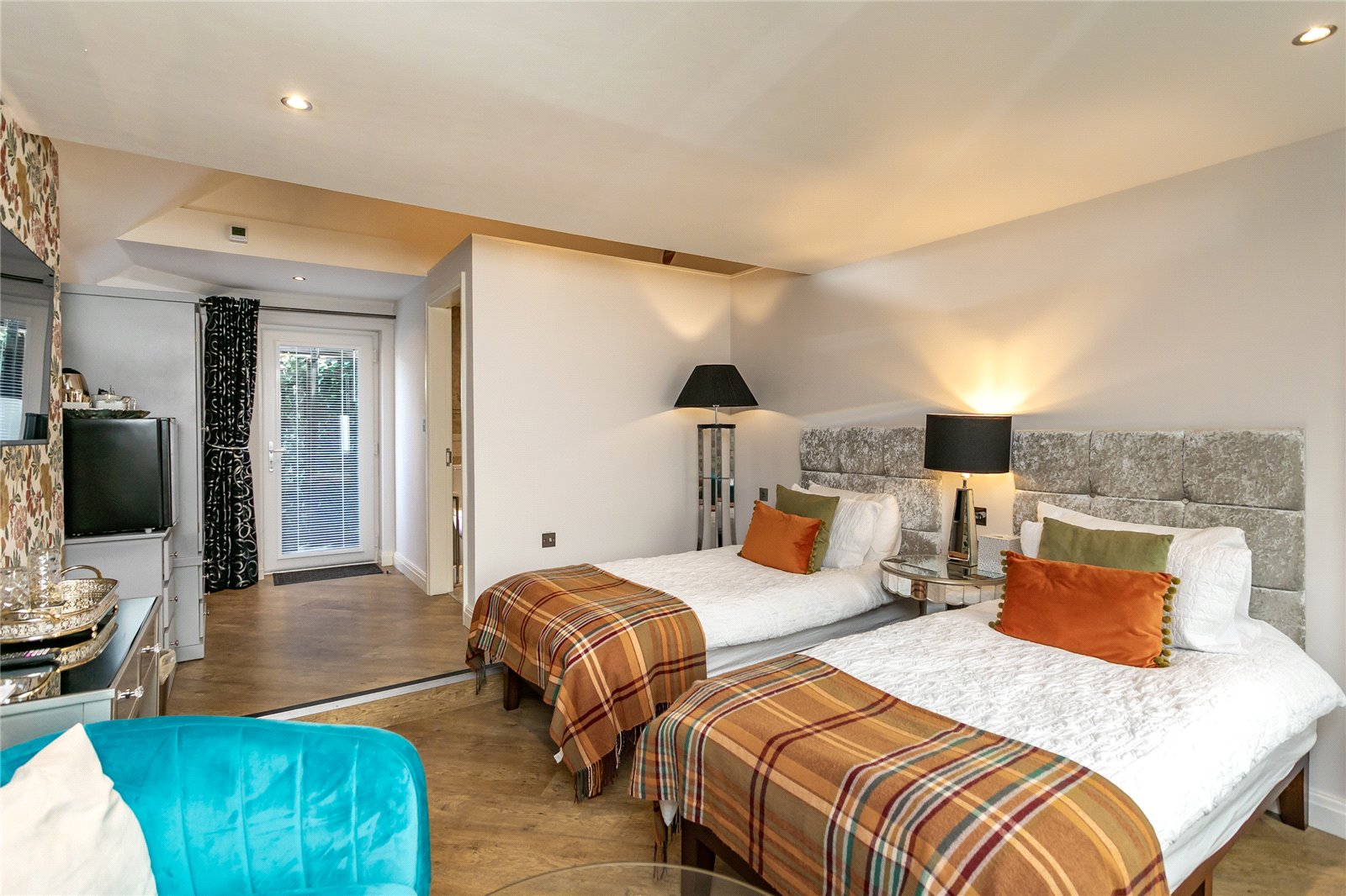 Beyond the main residence we find Willow Lodge, this area has been used to accommodate other businesses previously but is now used as a 4 bedroom bed and breakfast, click here. A kitchen and store is included to serve the 4 beautifully furnished bedrooms, each with ensuite. This element of the property adds so much flexibility subject to gaining any necessary consents, there is potential to use as annex, studios, gym or other ancillary accommodation. Please see planning section in the general remarks & drop box link. Further electric gates and parking are provided separately to Willow Lodge, giving the buyers the ultimate privacy.