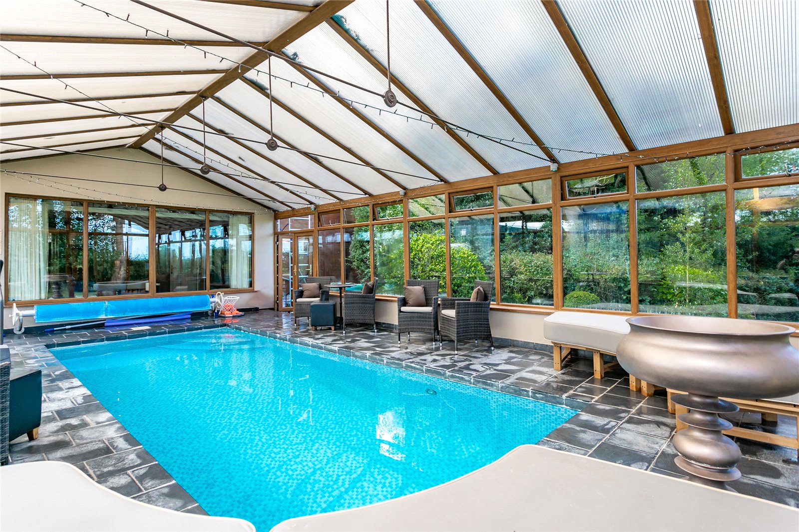 The snug/cinema room has views towards the pool and to the side of the property The pool room enjoys views out to the gorgeous gardens and grounds and there is plenty of space surrounding the pool to pull up a chair and relax. Patio doors open into the garden space.
