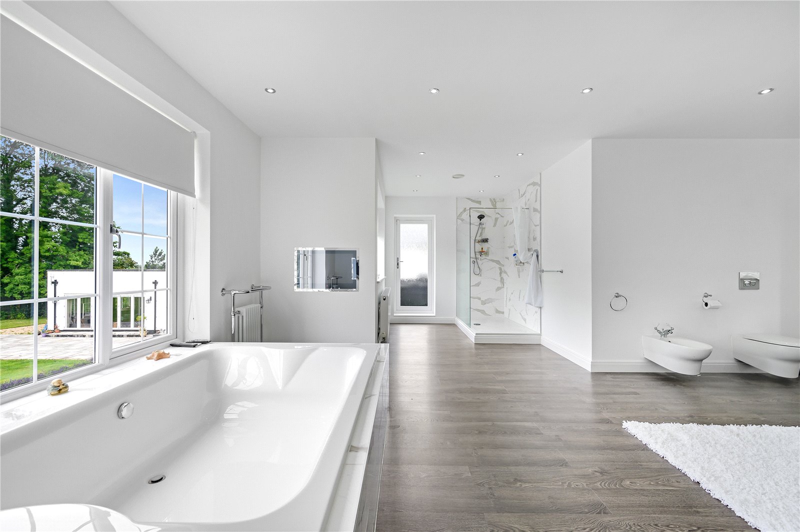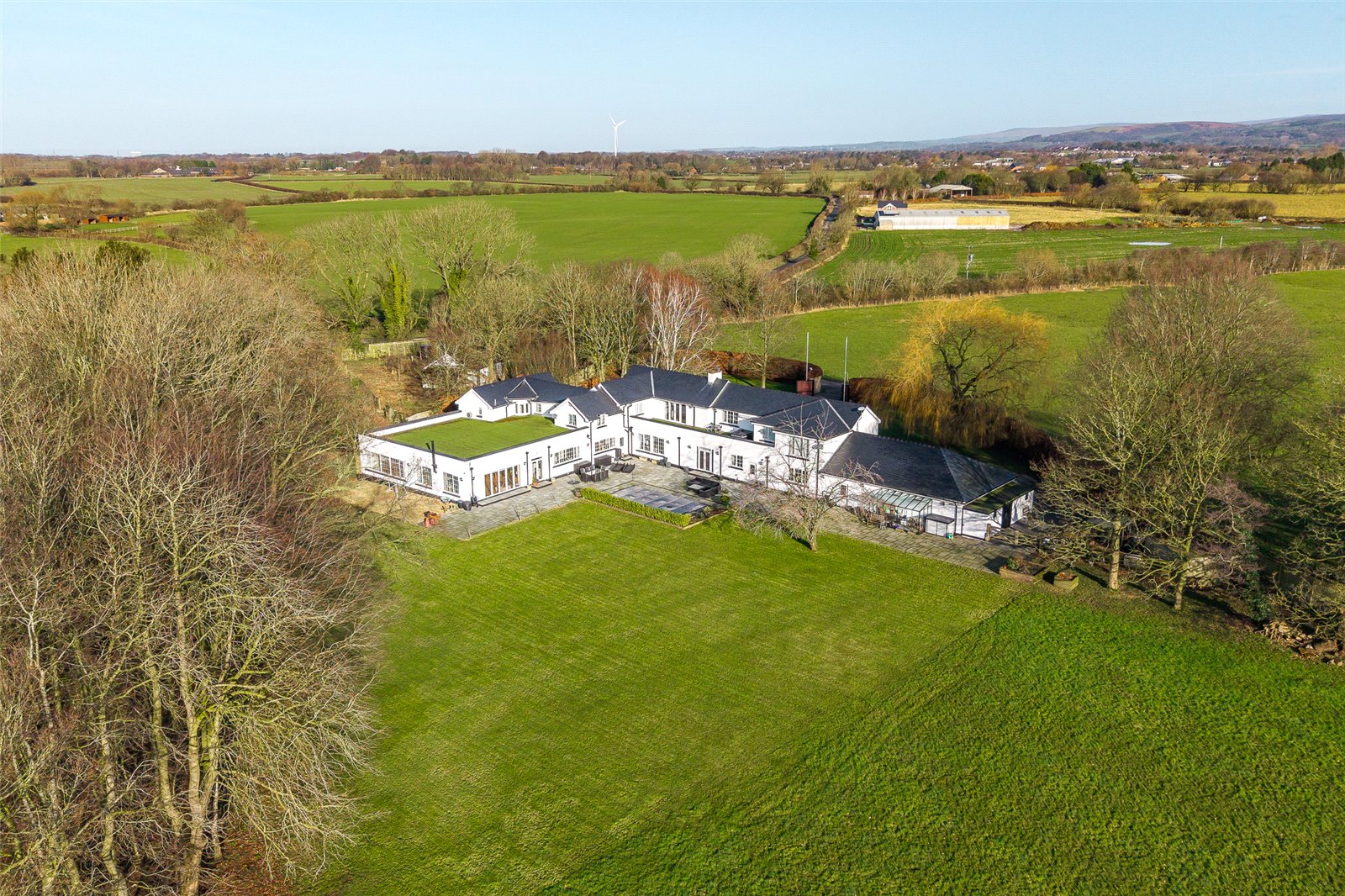 The principal bedroom suite is something to behold, being both spacious and luxurious whilst enjoying panoramic views across the countryside towards the fells, also overlooking the grounds to the rear. A door leads out onto the balcony area which has a hot tub. The principal bedroom opens into a luxurious dressing room complete with wine/drinks fridge with fully fitted furniture and stunning views. An impressive ensuite has been fitted again to make the most of the views. There are two wash handbasin in units along with a two person bath and two televisions which can be seen from the bath. A separate shower, bidet and WC are also provided. There is a door from the ensuite out onto the balcony for the ease of use of the hot tub and balcony area. This wonderful principle suite really is the centrepiece of the first floor space. There are five further bedrooms along with three family bath/shower rooms.