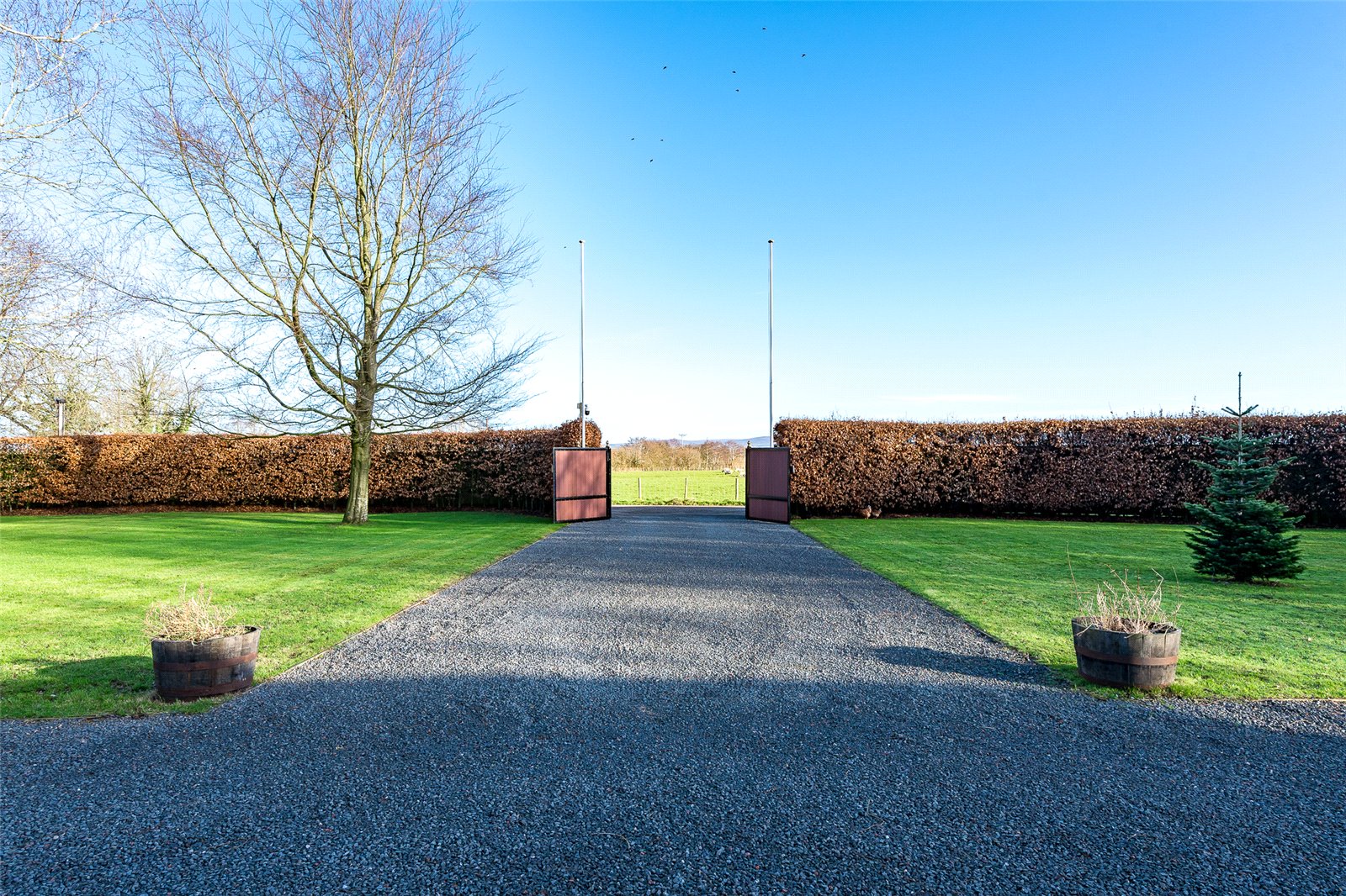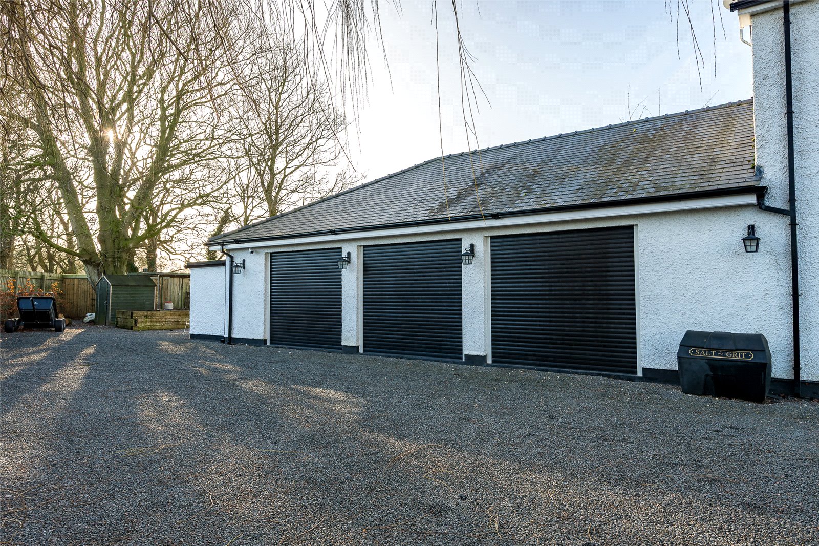 The property is approached from Catterall Lane and entered by electronically operated coded gates which lead onto a further private road and further gates open into The Gatehouse. There is an expanse of gravelled drive and parking area which lead through to a triple car garage. There is useful large storage area above the garage which is accessed via an independent staircase.