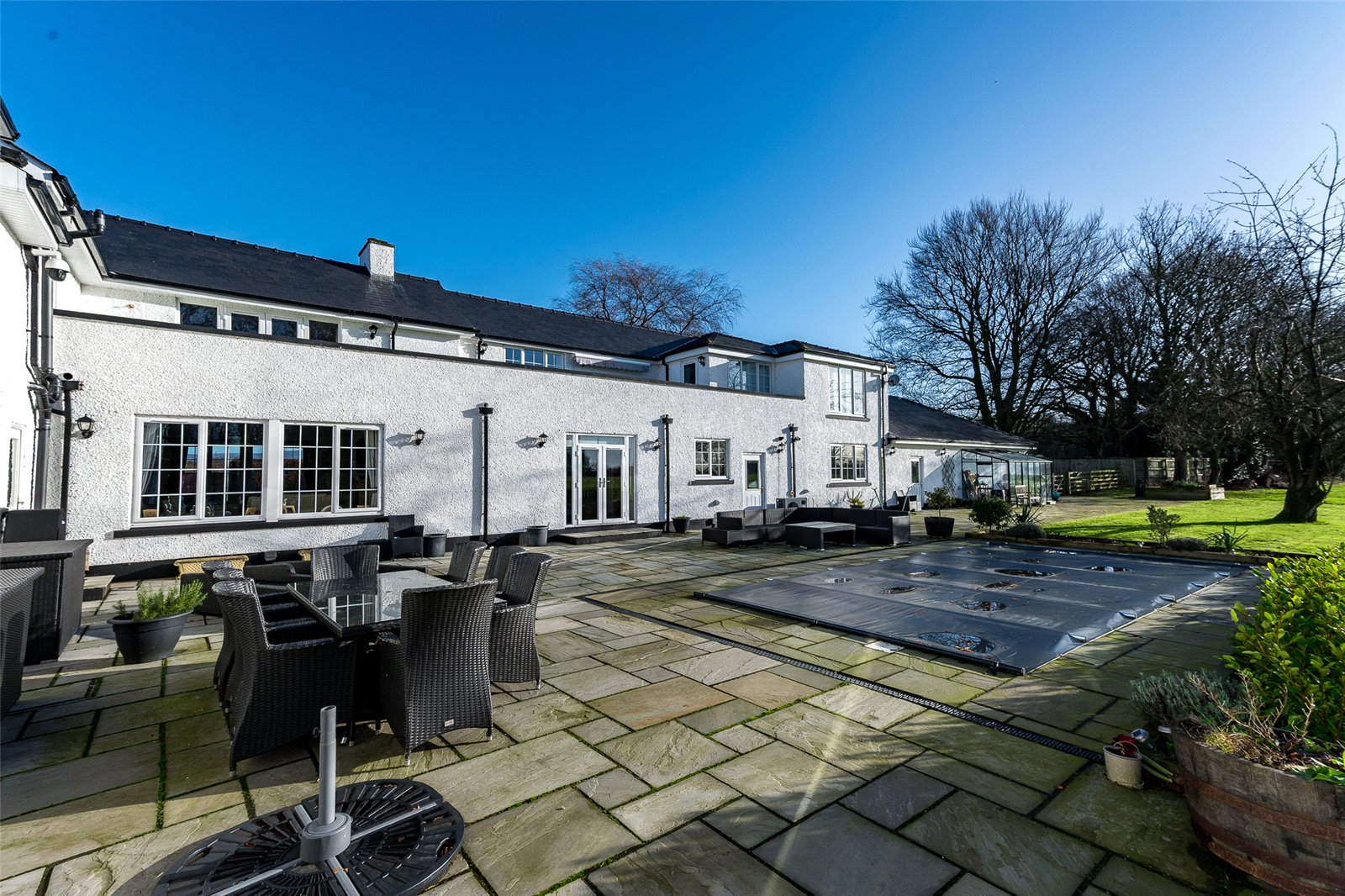The property exudes charms and is clearly substantial, encompassed by a beech hedge, close board and stock proof fence to the front affording plenty of privacy. The immediate grounds are largely lawned with an expanse of flagged patio at the rear. The current vendors have added a heated swimming pool at the rear of the patio. The remaining gardens include and expanse of lawn, mature trees and woodland beyond. A paddock is found to the rear of the property.