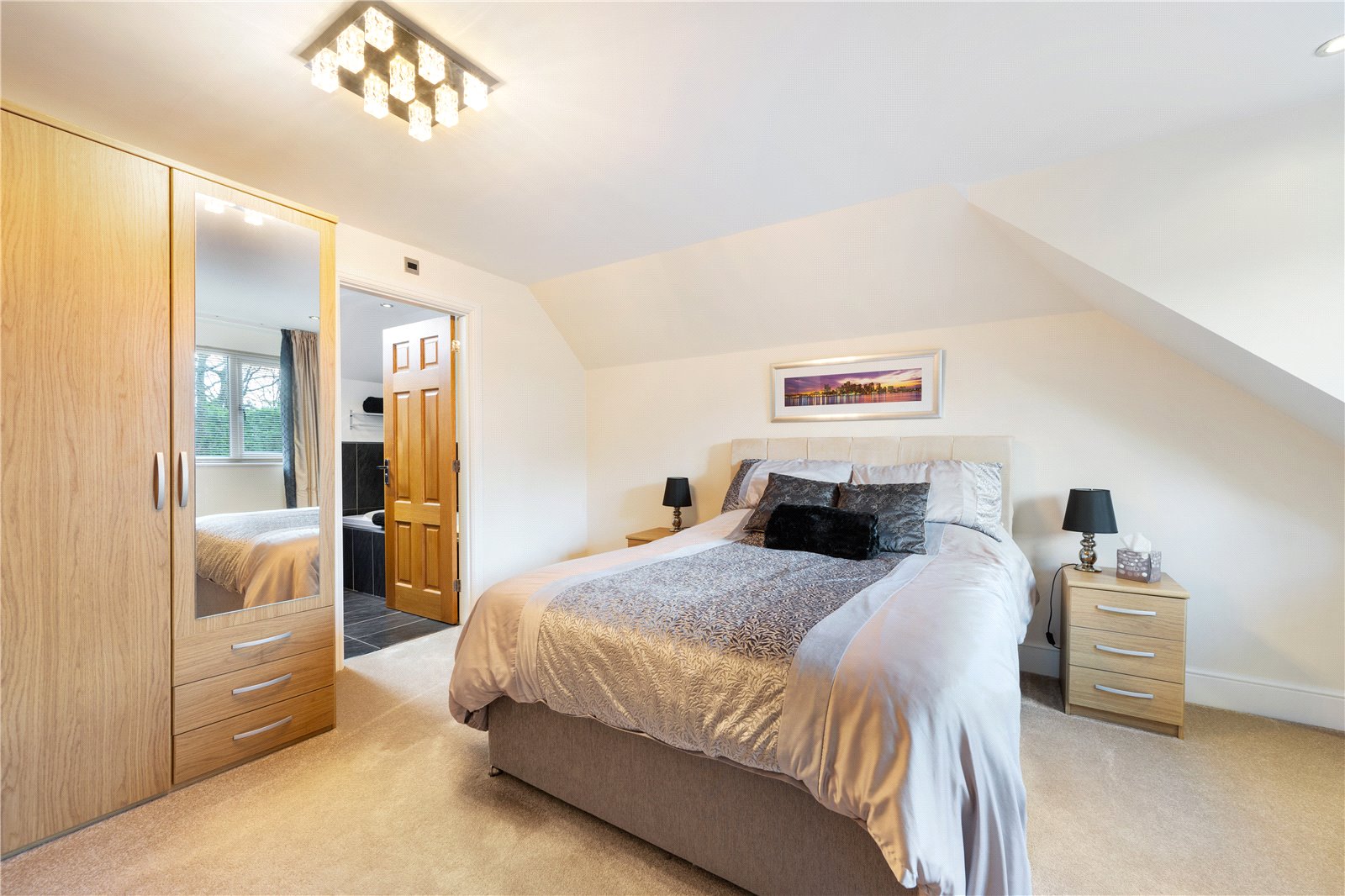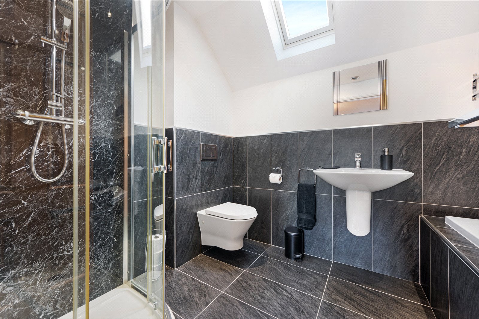 The ensuite bathroom dazzles with its sleek finishes and high-spec fittings, offering a wow factor that defines luxury. Picture yourself indulging in the spacious sunken spa bath, complete with Chromotherapy light and a built-in TV, while the walk-in shower cubicle, his and hers wash hand basins, and a discreet low-level WC add to the elegance, throw in the Sonos surround sound to create the perfect ambience.
