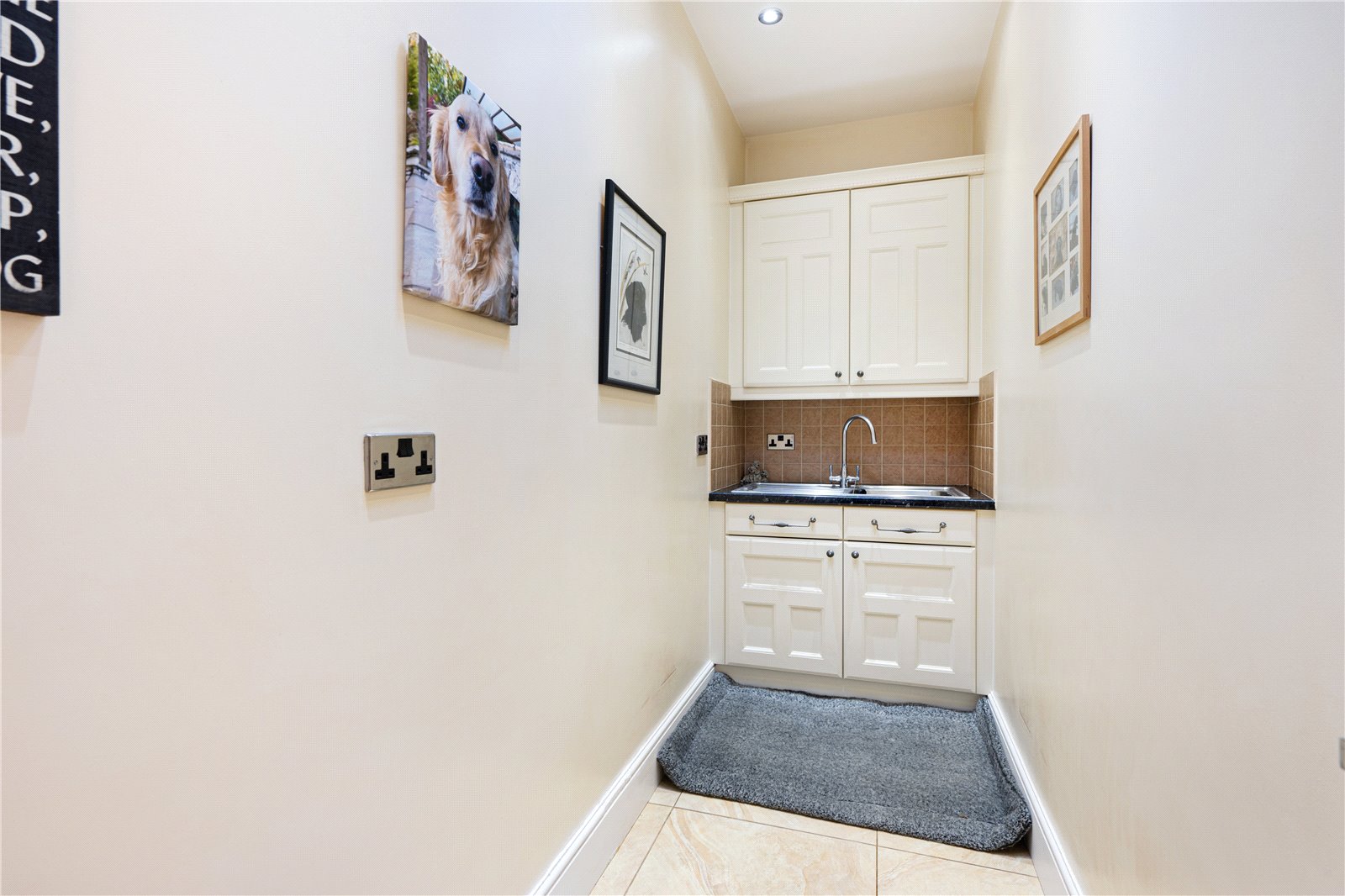 At the core of the home is the show-stopping open-plan kitchen and dining area, thoughtfully designed for both everyday living and entertaining. An extensive range of bespoke units, premium integrated appliances comes together with a central island, creating a perfect balance of functionality and style. Integrated appliances include 2 ovens, hob, extractor, wine cooler, dishwasher, microwave, and fridge freezer. The true highlight of this space is the mesmerizing built-in marine tank — a unique and tranquil focal point that adds an extraordinary touch of character and distinction to the home.