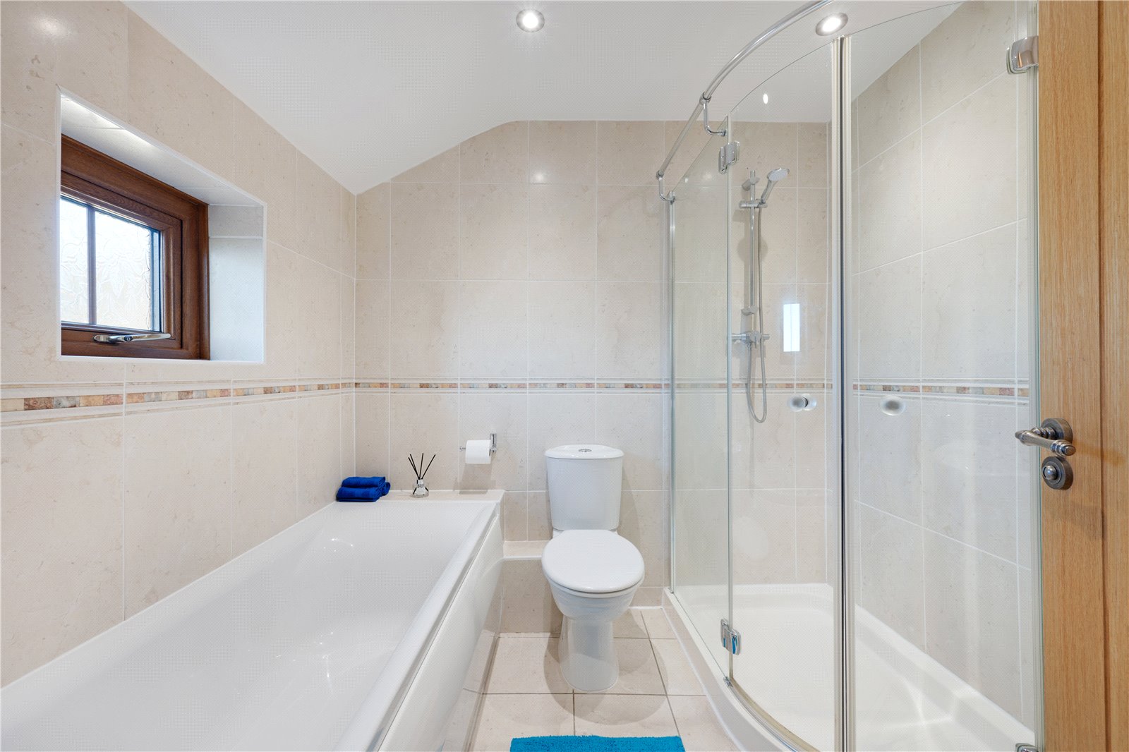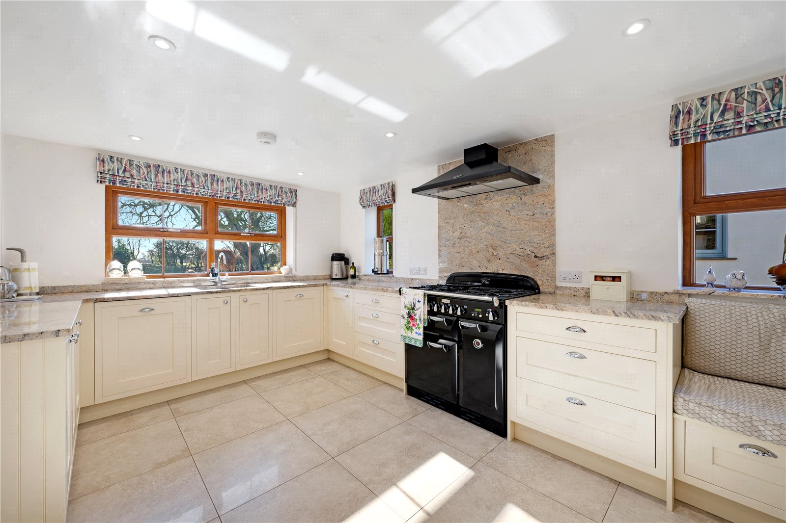 The centrepiece of this super property is the dining kitchen, with a range of base kitchen units and a contrasting granite work surface, a window seat has been incorporated. The kitchen has a range cooker with an extractor over. An integrated dishwasher, fridge freezer and washing machine is included and there is underfloor heating in this space.