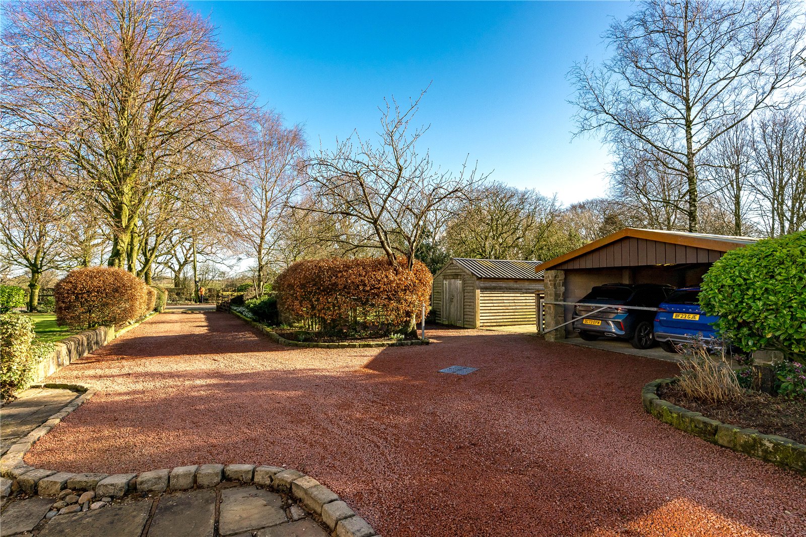 The current outline plans show the existing driveway being used to access the two plots. The planning consent will involved the removal of the garage for Yew Tree Farm. The planning consent document is within the sales particulars along with the site plan. For further information please see Preston City Councils website.
