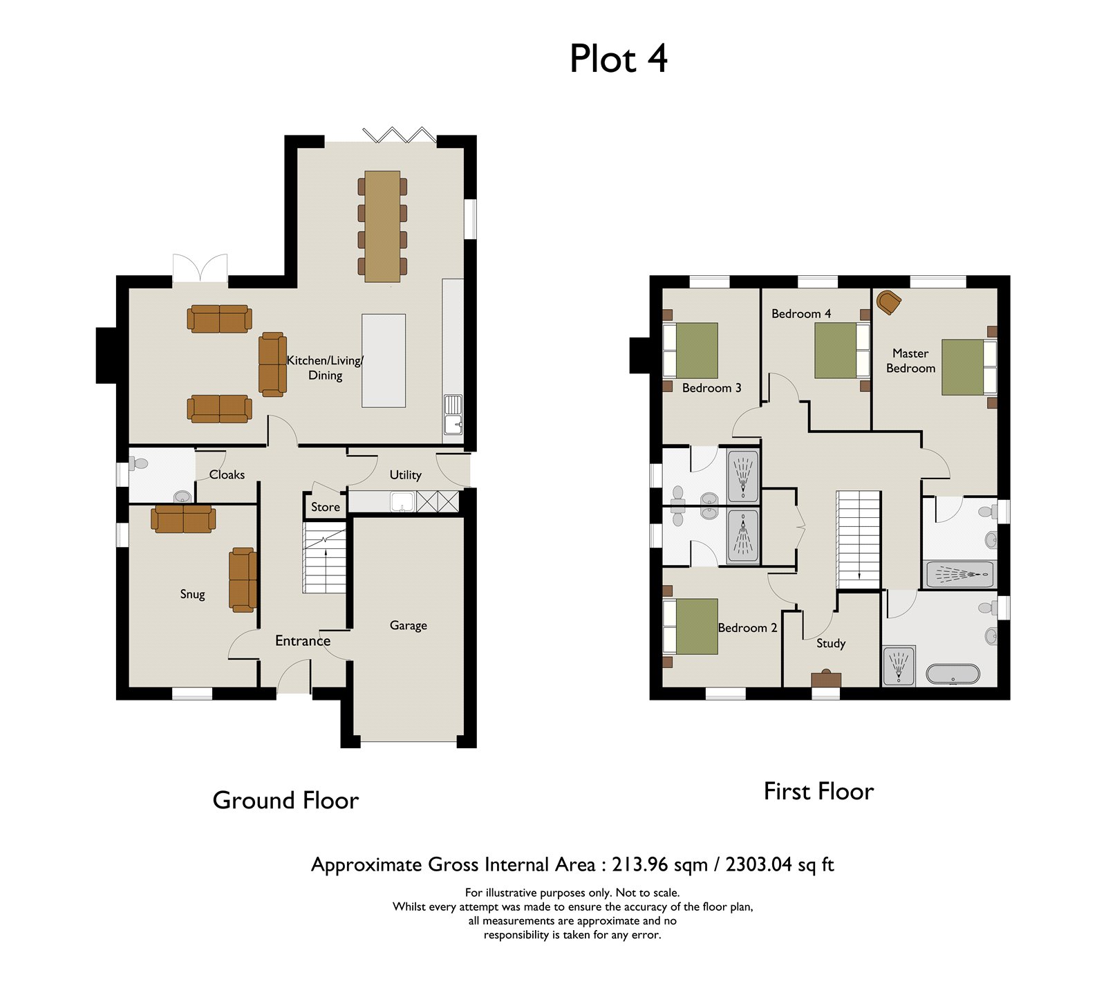 The staircase rises up to the first floor where there are four bedrooms in total. The principal bedroom is positioned at the rear of the property and enjoys a shower ensuite. Bedrooms two and three have views to either the front or rear of the property and both include a shower ensuite. Bedroom four enjoys views out to the rear and is served by the family bathroom which is found towards the front of the property. A study is also provided which has views to the front.