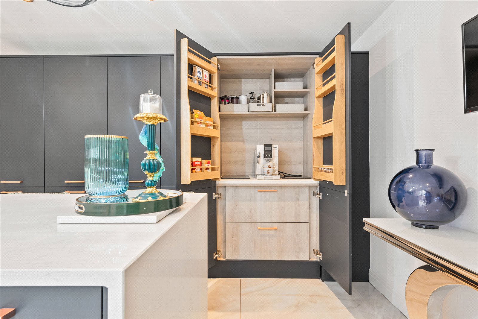 The heart of the home is the luxury fitted breakfast kitchen, finished with a comprehensive range of modern units, integrated appliances and a central island. This space opens through to the handy utility and laundry room — enhancing the practical day-to-day living space.