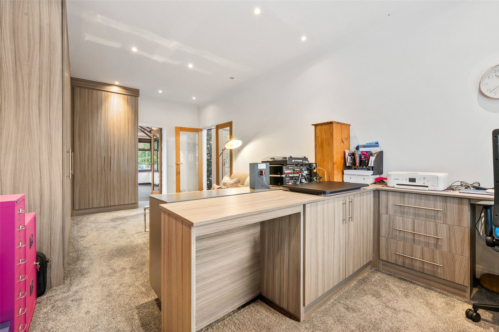 The accommodation begins with a welcoming entrance hallway providing access to all principal rooms. There are two spacious reception rooms, offering excellent versatility for everyday living, entertaining or working from home, with one incorporating a useful home office area. This space leads to a conservatory/gym space, creating an additional reception area that enjoys views over the garden and adds further flexibility to the layout.