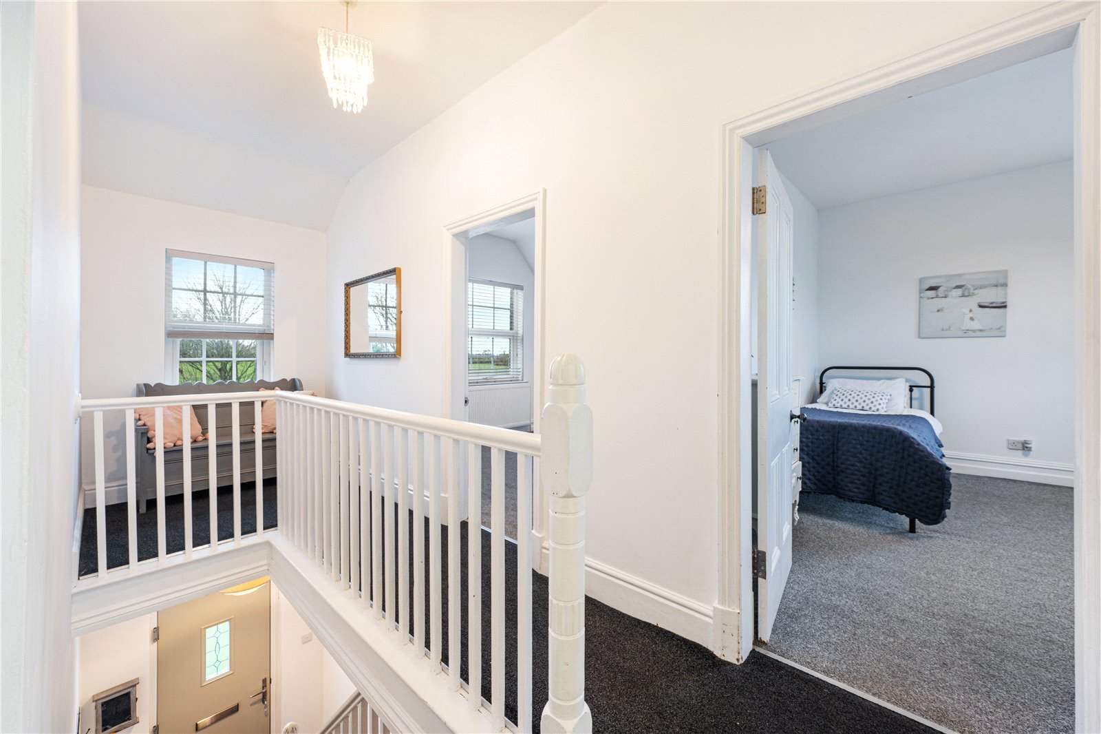 The first floor provides four double bedrooms, all enjoying pleasant outlooks, with the principal bedroom benefitting from an en-suite shower room. A contemporary family bathroom completes the accommodation.