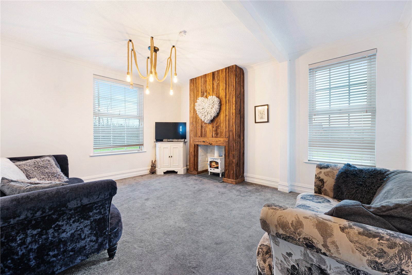 The property successfully blends traditional character with contemporary finishes. On entering, the welcoming hallway immediately sets the tone with high ceilings and excellent natural light. There are two well-proportioned reception rooms, both enjoying dual aspects, offering flexible living and entertaining space. The sitting room features a characterful timber-clad chimney breast with log burner, while the second reception room would suit use as a formal dining room, games room or snug.