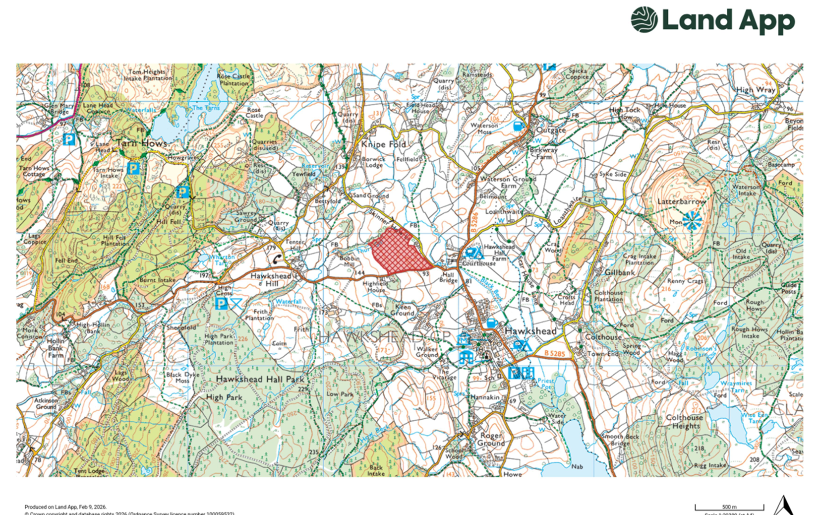 The land is located at Violet Bank, Hawkshead and is situated Northeast of the village with three roadside access points off the B5285 and Skinner Howe Lane.