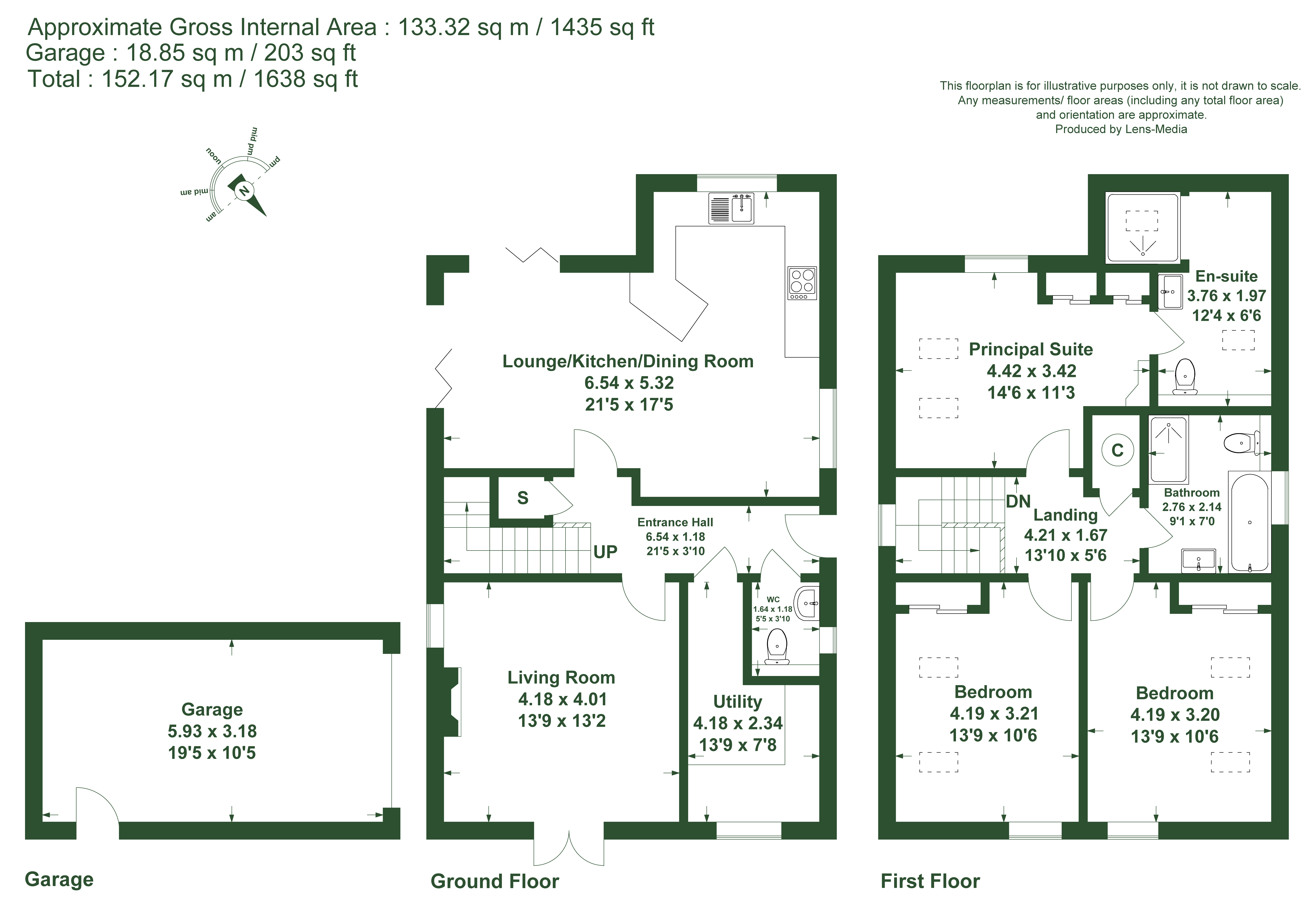 To the front, a private driveway leads to the garage, which is fitted with an electric up-and-over door, power, and lighting.