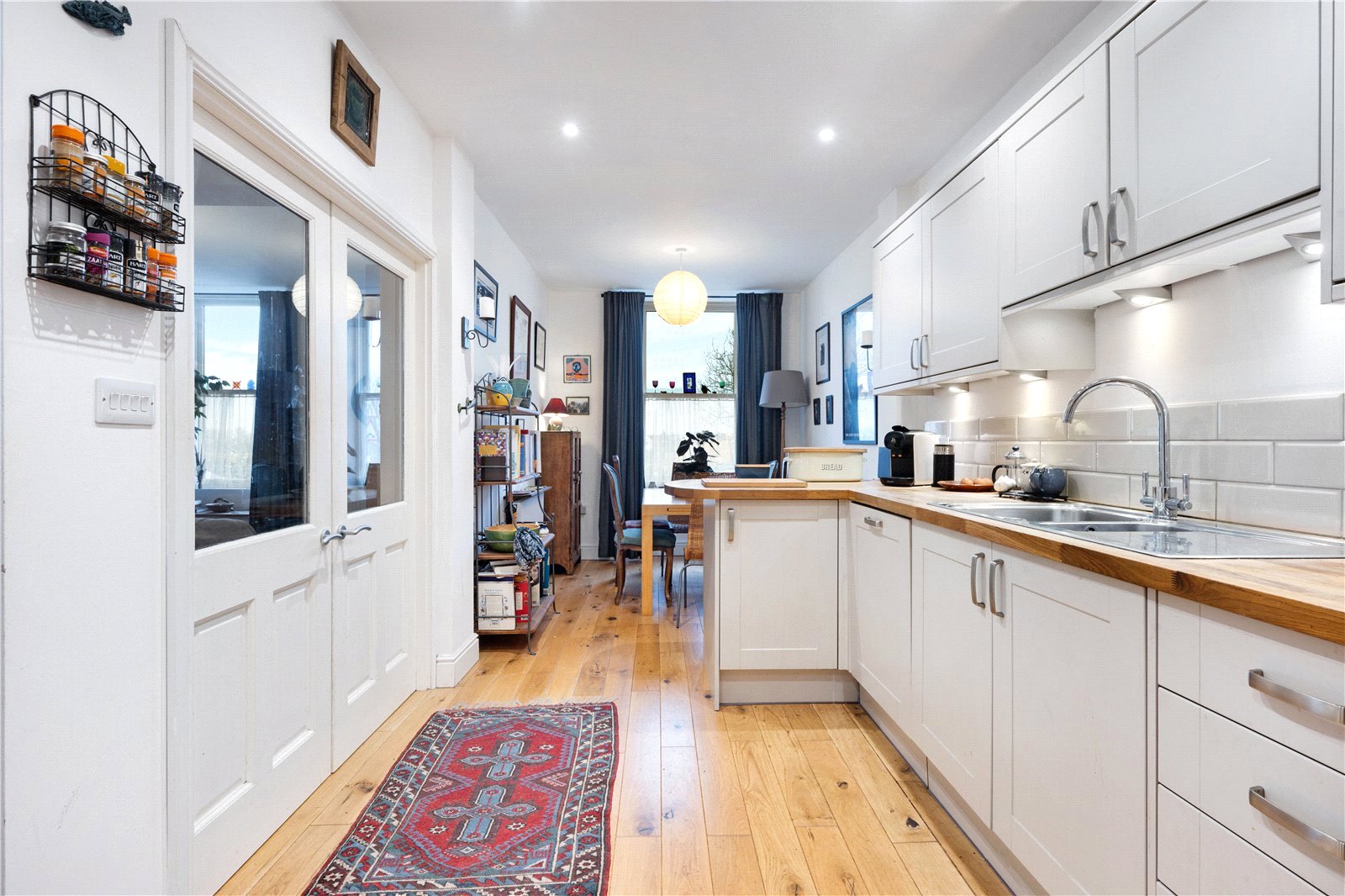 The main house provides a substantial property with generous accommodation over three floors. Accessed from the side entrance, it opens into a hallway which leads to a light and open living room. Double doors open to the kitchen space, which provides wall and base units and integral appliances, with an area for dining situated to provide an outlook over the front. To the rear of the kitchen is a useful utility space with a rear personnel access door. From the kitchen there is also access to a substantial cellar space, which offers further opportunity for upgrading to suit a purchaser’s needs.