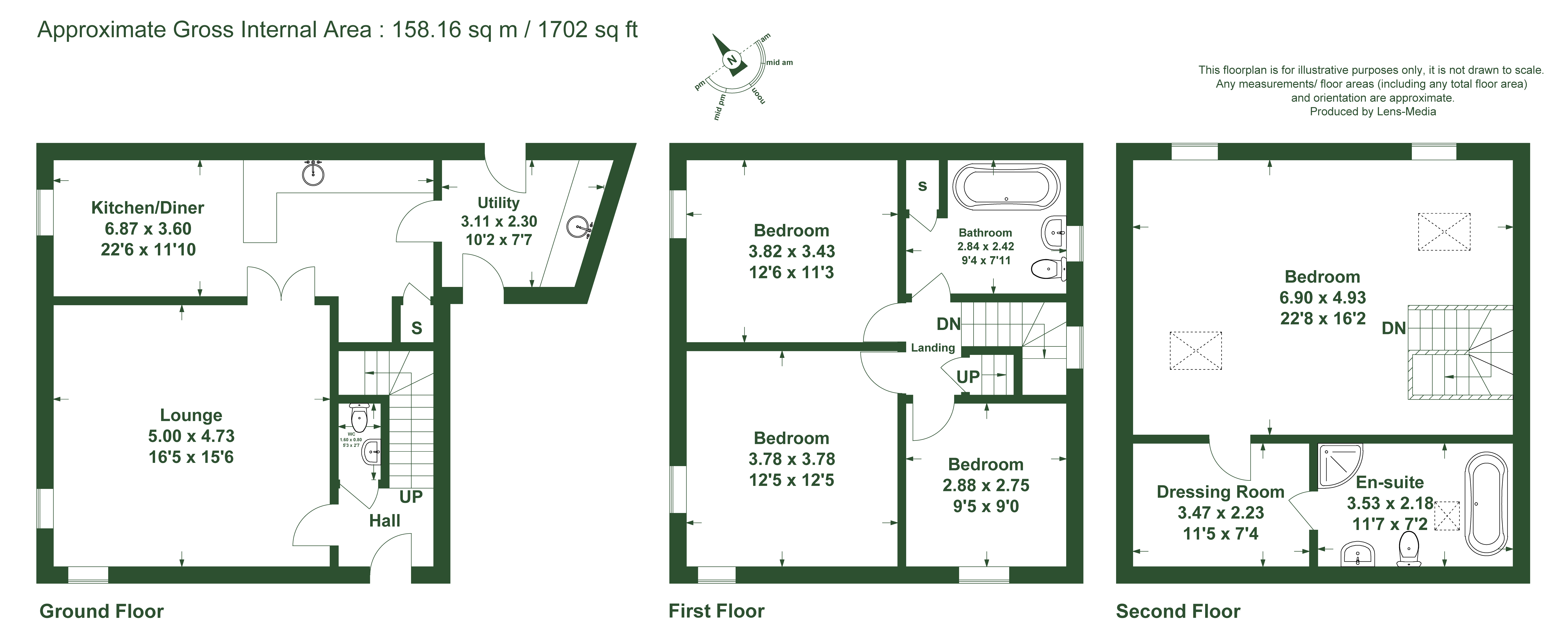 Continue to the second floor and there is a superb suite space comprising a generous bedroom area, highly appointed ensuite with WC, wash hand basin, separate shower cubicle and freestanding bath. There is also a large dressing area providing excellent storage.