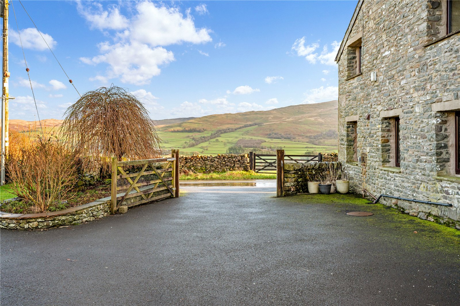 Outside, the property offers beautiful private gardens, which are made up of lawned and patio areas within charming stone wall boundaries. Beyond, there is rolling countryside with open fields and views over the distant fells. The setting and outlook add to the cottage’s traditional charm.