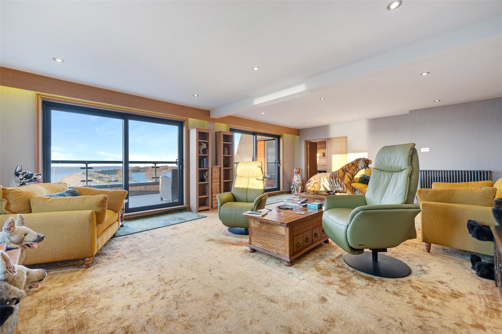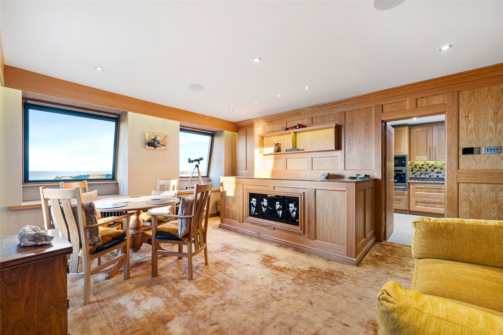 The further reception room off the kitchen, currently utilised as ‘the breakfast room’ features its very own bar and again offers the most spectacular views across the coastal waters. The windows throughout the property act quite literally as living paintings.