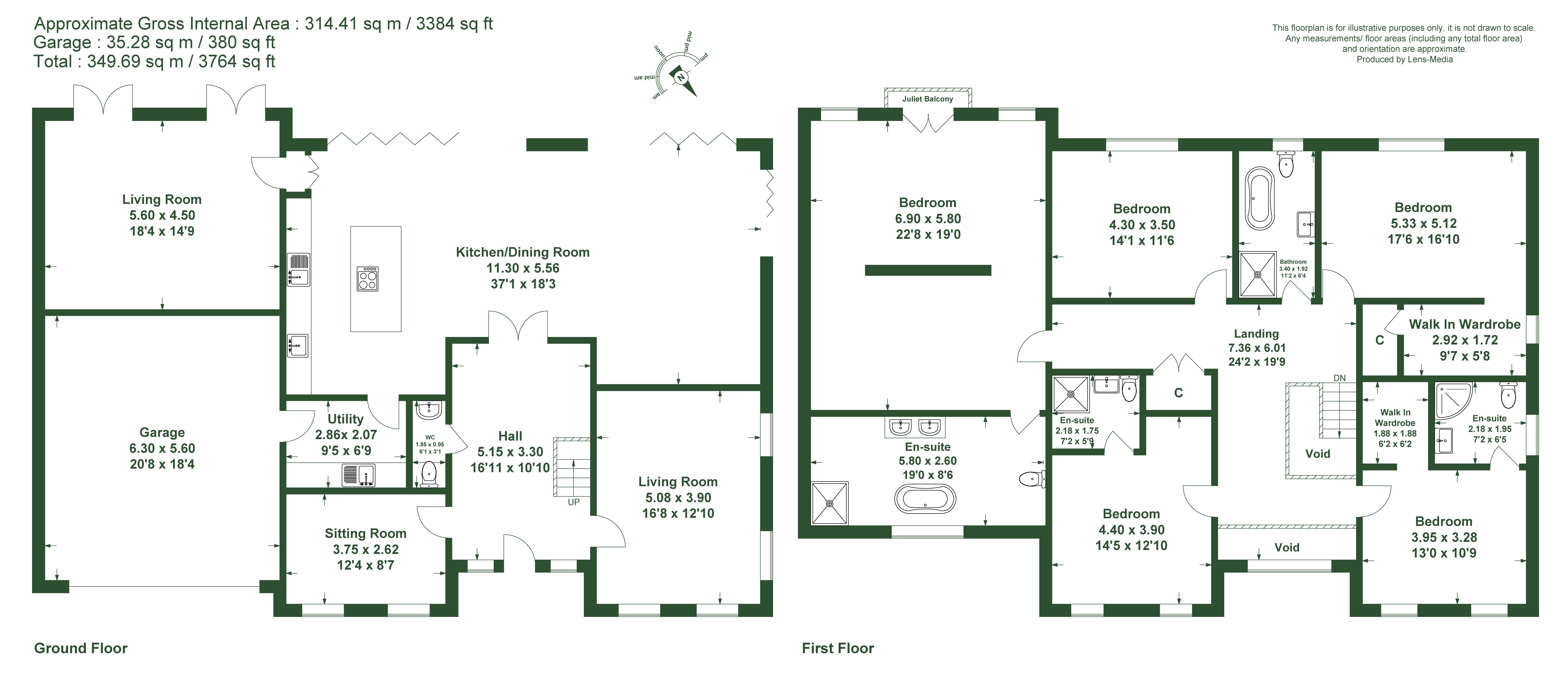 Upstairs, the first floor hosts a stunning principal bedroom with a dedicated dressing area and a sumptuous en-suite. There are two additional en-suite bedrooms, as well as two further bedrooms served by a luxurious family bathroom. A double garage completes this outstanding home.