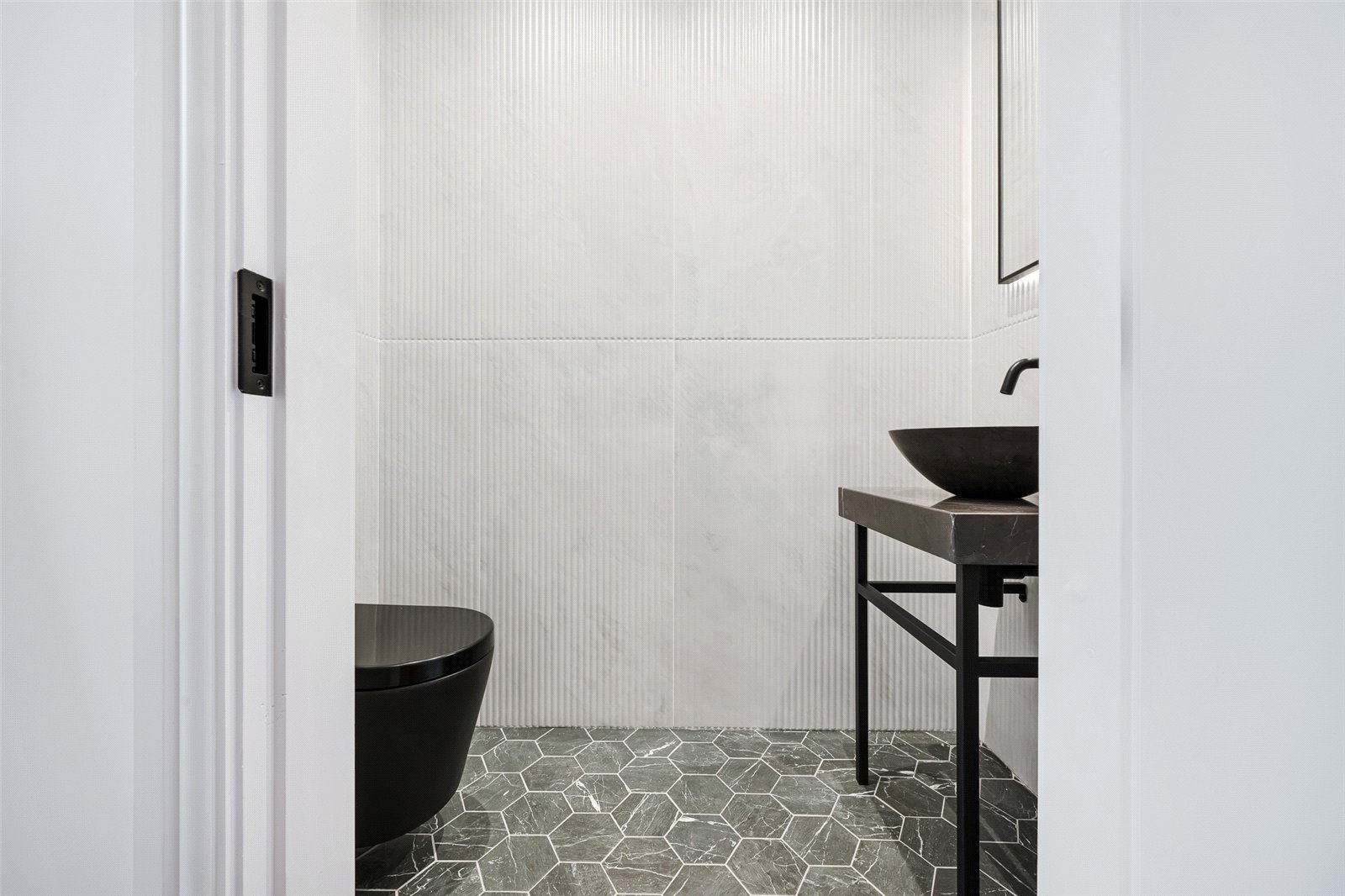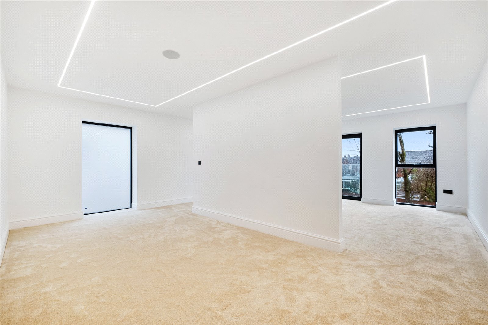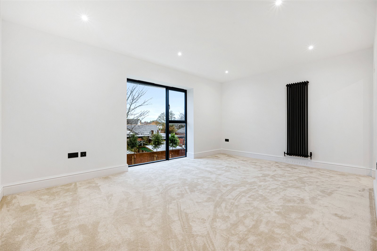 The Principal Bedroom spans the full width of the property and is truly exceptional. An impressive and generously sized room featuring a Juliet balcony and additional rear-facing windows. A partial dividing wall subtly zones the sleeping and dressing areas, bringing both style and practicality. The sumptuous en-suite is equally impressive, offering a double-ended bath perfectly positioned in front of a feature window, a walk-in shower, twin washbasins, and a WC, all beautifully finished with panelling and LED detailing.