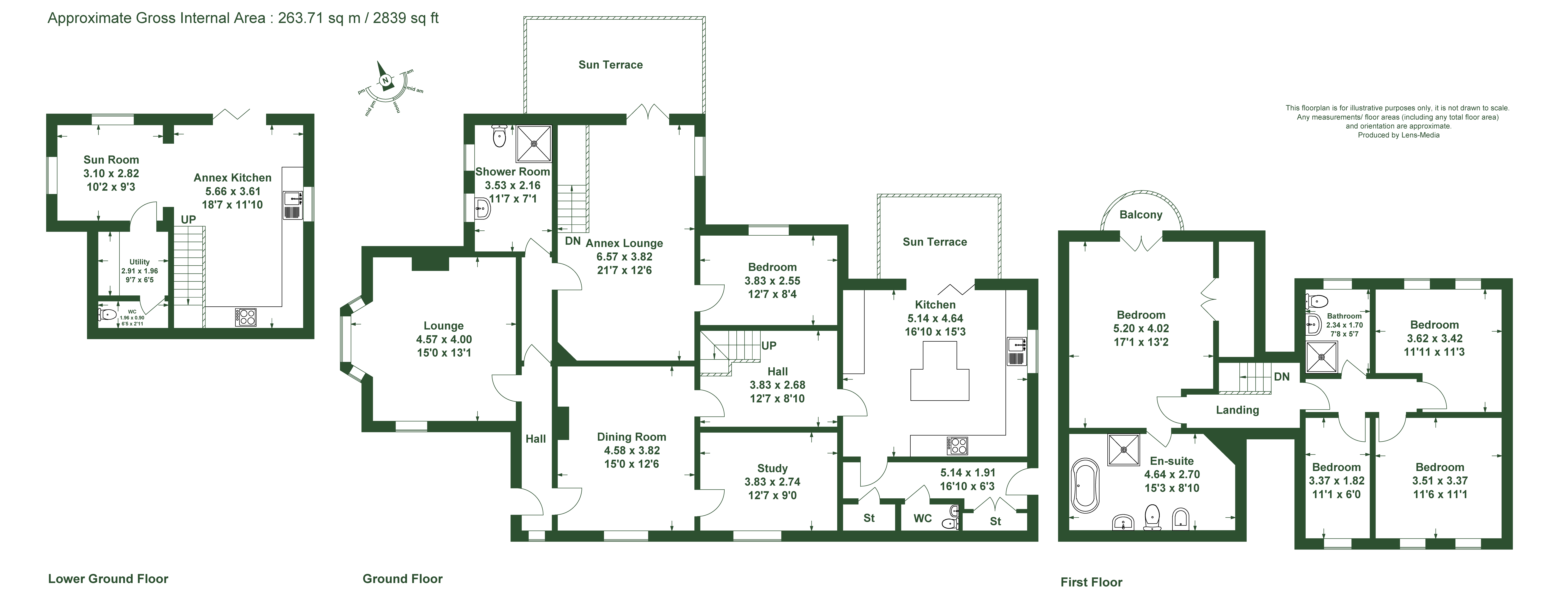 The lower ground floor includes a kitchen area which has a range of units with a granite work surface. There is a sink, point for a range cooker with an extractor over, fridge and an integrated dishwasher. There is plenty of space for dining or lounging with bi-fold doors open onto the gardens and grounds. A further utility room is provided which has a point for a washing machine and dryer along with a point for a fridge.