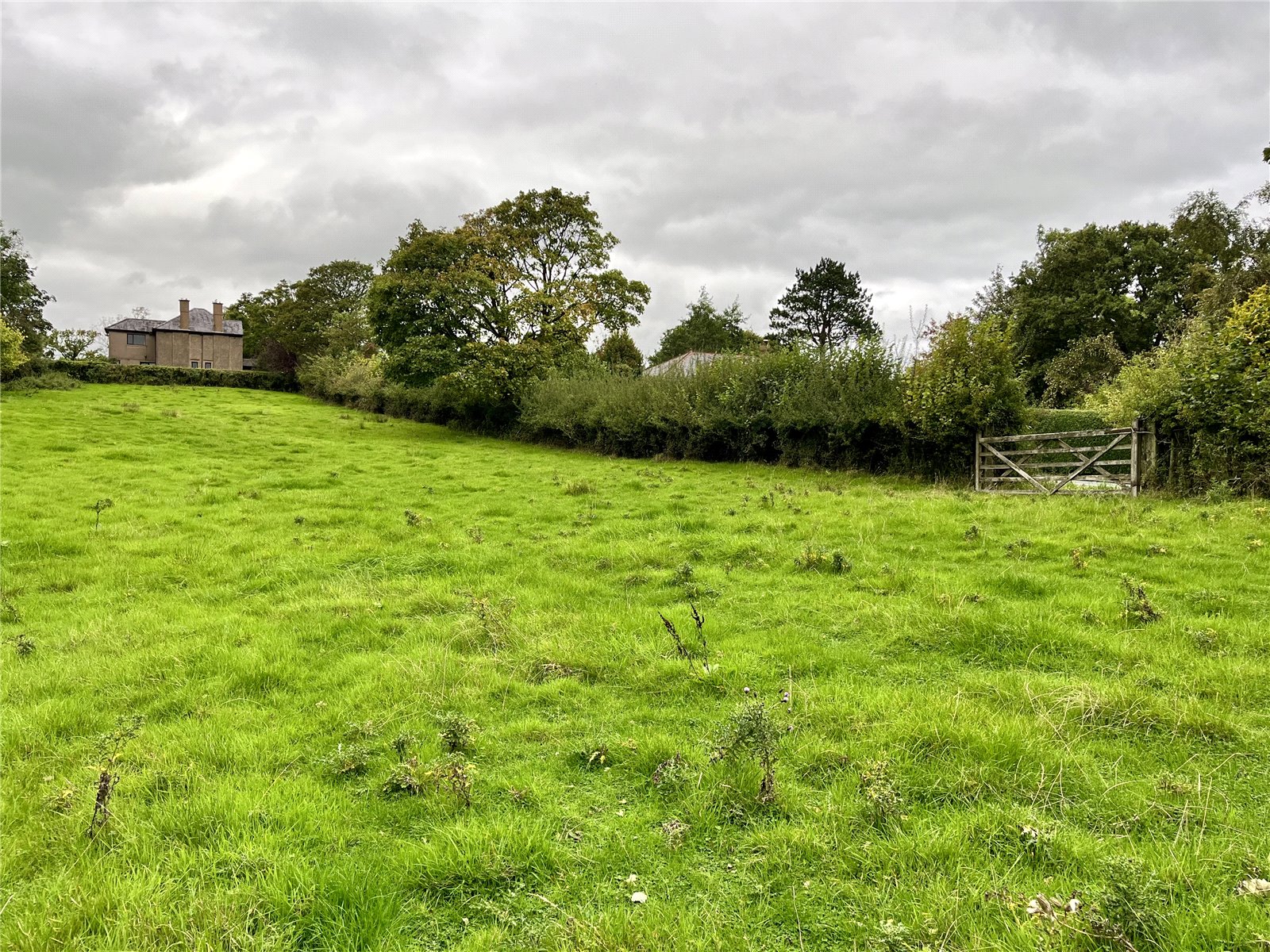 The grass paddock is accessed directly off Ribchester Road through a single wooden field gate. The land is encompassed in Hawthorn hedging and a post and wire fence to part, and a post and wire fence separating the woodland to the east.