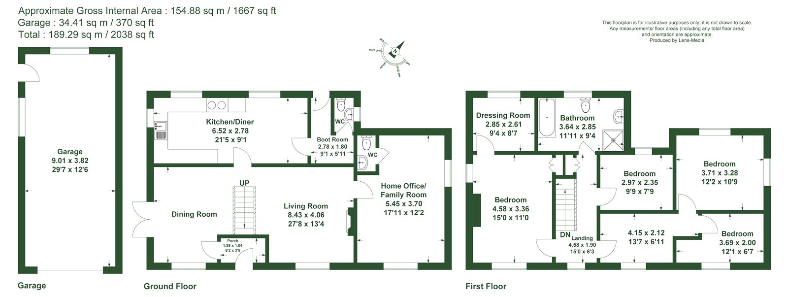 The staircase rises up to the first floor where there are four bedrooms in total. Bedroom one has windows to two elevations and includes a dressing room, family bathroom which has a bath, WC, bidet, wash handbasin set in a unit. Bedroom two enjoys views to the rear, whilst there is a walk through room which has windows to the front of the property and has been used by the current vendors as a bedroom, but this cant be classed as a bedroom for the purposes of these sales particulars. The third bedroom enjoys views out to the front whilst there are windows to two elevations providing good levels of natural light.