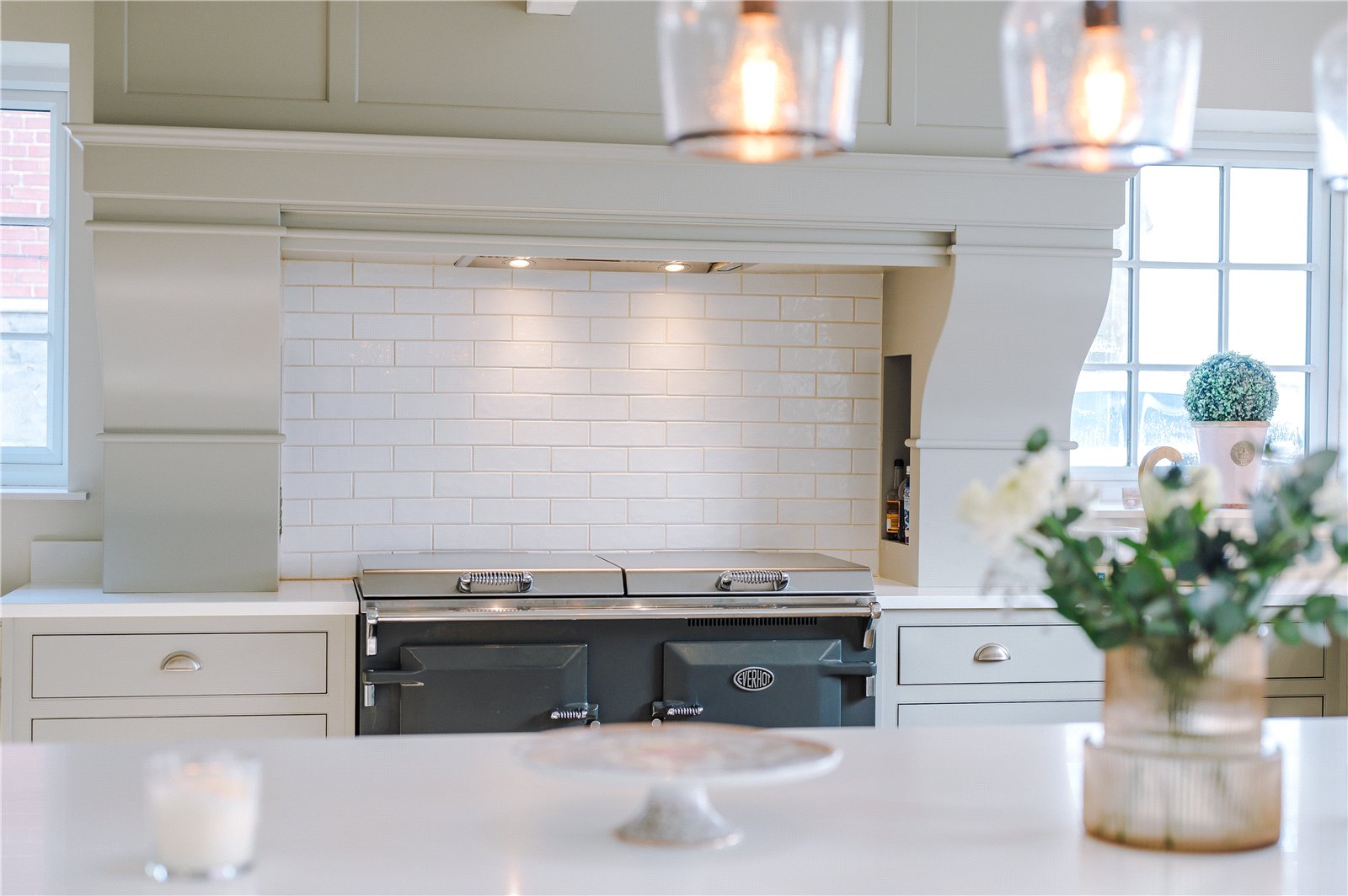 The home features four spacious en-suite bedrooms, a generously sized lounge with a log-burning stove and exposed beams, and a spectacular open-plan kitchen and dining area. The beautifully designed kitchen boasts sleek modern units, quartz worktops, a central island, an electric range-style oven, a Belfast double sink with an instant hot water tap, and high-end integrated appliances, making it the heart of the home.
