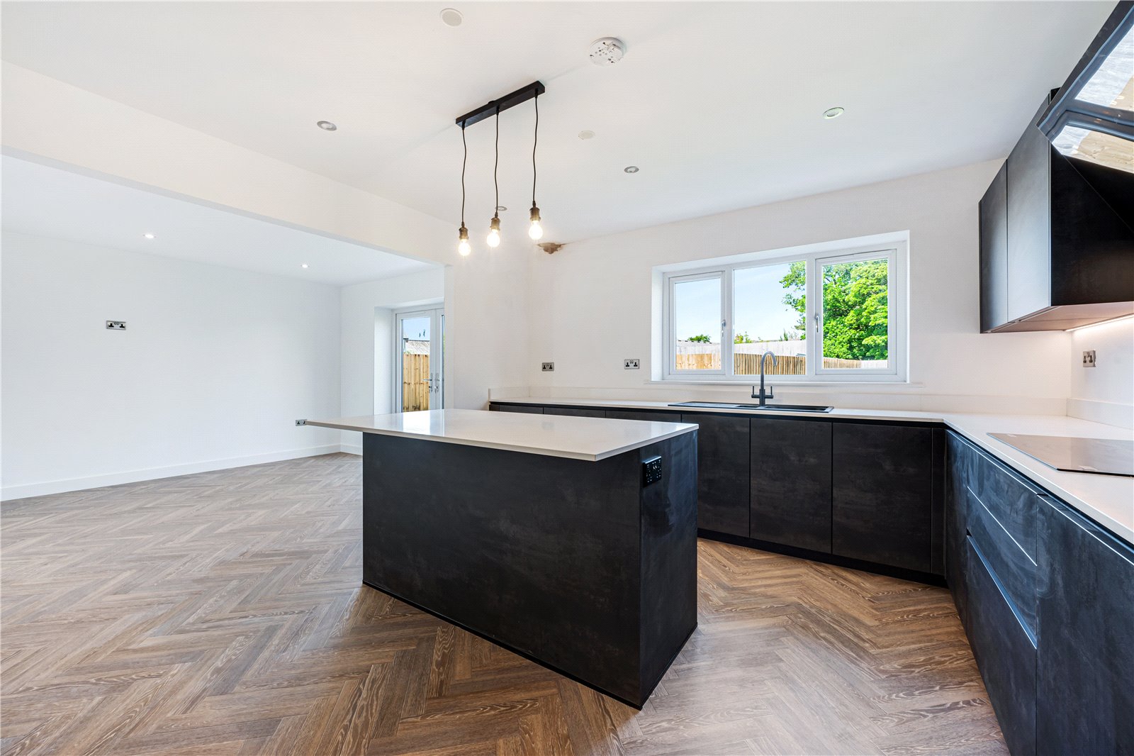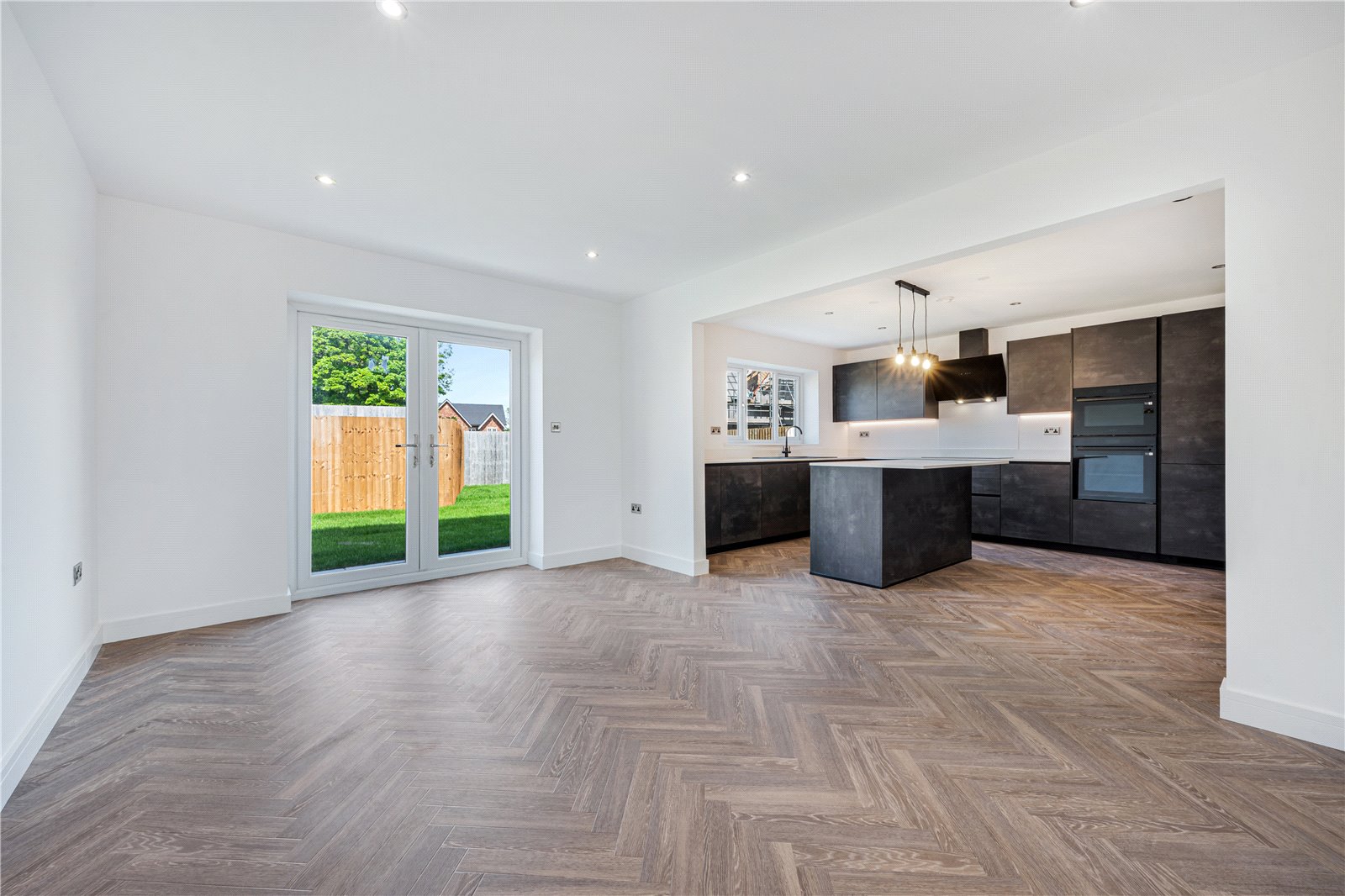The living kitchen area will be completed with a German kitchen with quartz work surfaces along with Samsung appliances which include a fridge freezer, combi oven, oven, induction hob with extractor over along with integrated appliances to include dishwasher. A 1 ½ sink and drainer will also be provided and there are Bluetooth speakers.. Patio doors lead out to the rear patio and garden areas. There is plenty of space for dining and lounging and when the doors open up into the lounge this is a fabulous space for entertaining.