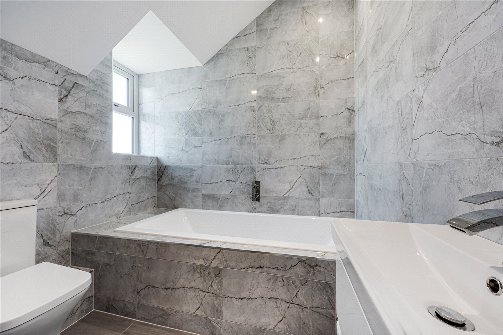 The utility room has a point for a washing machine along with a sink and a range of units. The underfloor heating manifolds are also found in this area. A door leads through to the garage which will have black flagged tiling and electric up and over doors.