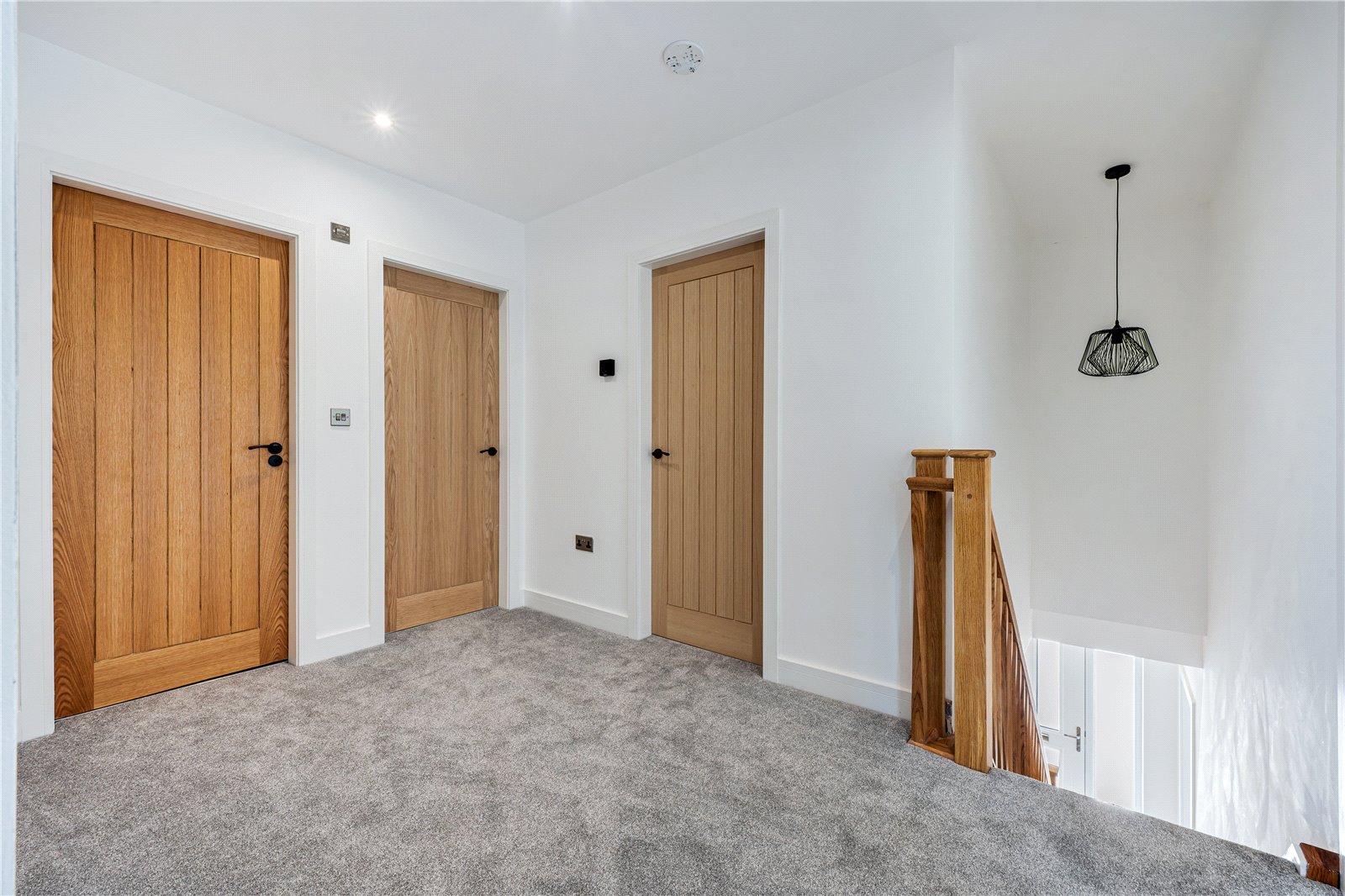 A part glazed door opens into the entrance vestibule where there are doors off to various ground floor rooms with oak veneered doors and spindled staircase which rises up to the first floor.
