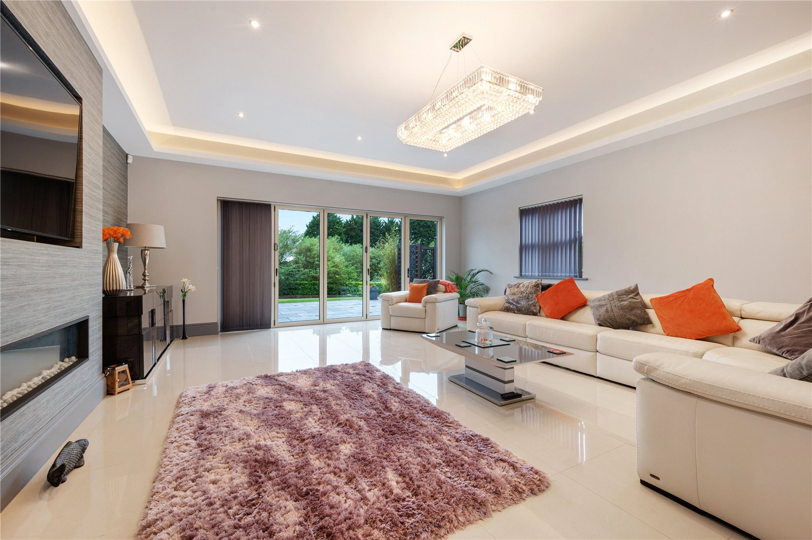 **SUBSTANTIAL HOME IN 2.1 ACRES** An impressive detached home set in 2.1 acres [0.8 hectares] or thereabouts in a lovely ‘hidden gem’ type setting with attractive views over the golf course to the rear. Beautifully presented and well laid out, this home has a superb design for modern family life. There is a fabulous living kitchen and 3 further reception room, 5 bedrooms and 5 bathrooms along with garaging for 4 cars. In a spacious plot with plenty of parking, fabulous gardens and a paddock - there is a lot to love about this house.