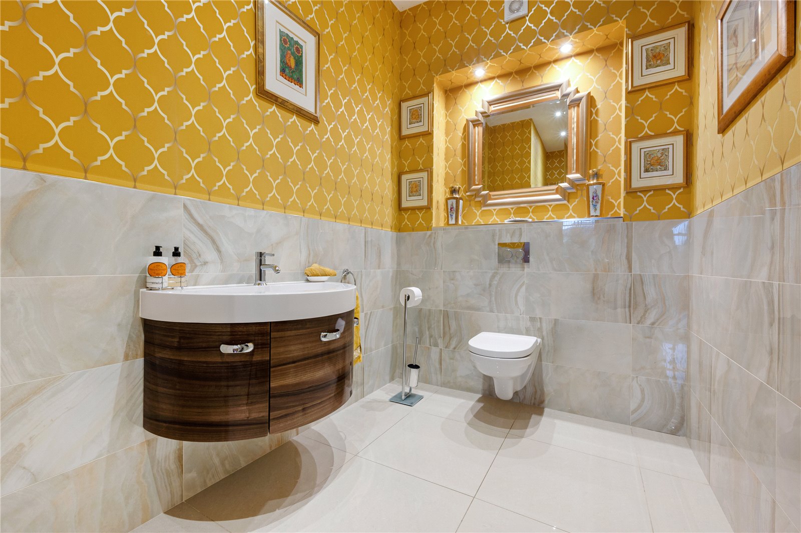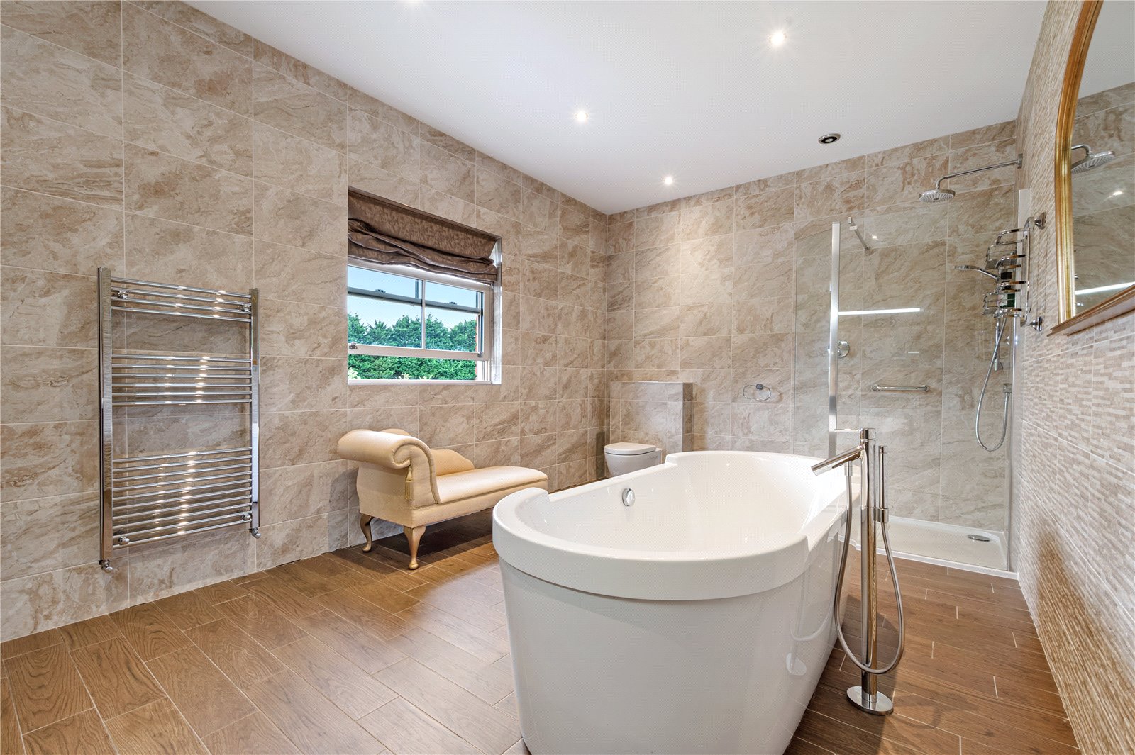 The third bedroom enjoys views out to the rear of the property, over the gardens and golf club beyond. There is a shower en-suite which has a shower, pedestal wash hand basin, WC and heated towel rail. Bedroom Four also has a shower ensuite whilst Bedroom Five includes a range of fitted wardrobes, has windows to two sides, again providing plenty of natural light and includes an ensuite which has a bath with a shower over, WC, wall-mounted wash hand basin and a heated towel rail.