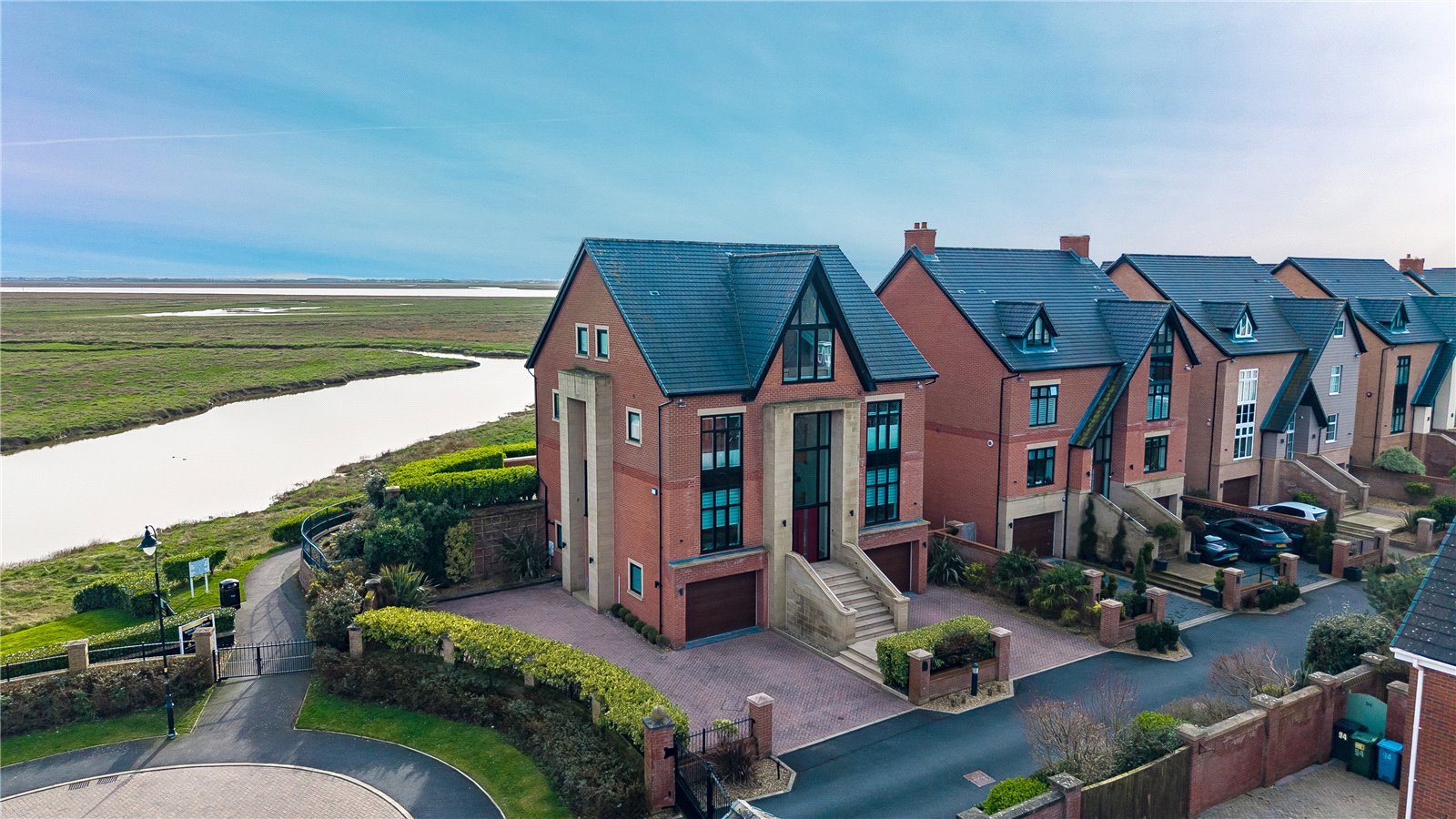 Introducing White Horse. This impressive property is sure to wow you! Nestled within one of Lytham’s most prestigious gated communities, this home is one of only ten luxury villas, each crafted to impress, featuring the most amazing coastal backdrop of the Ribble Estuary that defines waterside living at its finest. There is a lot to love here. Offering a gorgeous living kitchen, 4 further reception rooms, 4 bedrooms each with its own ensuite, utility room, shower room and integrated garages, there is so much space to be enjoyed. This home has been thoughtfully designed, with the main living spaces positioned to capture uninterrupted views over the coastal waters where the view is ever changing with the seasons.