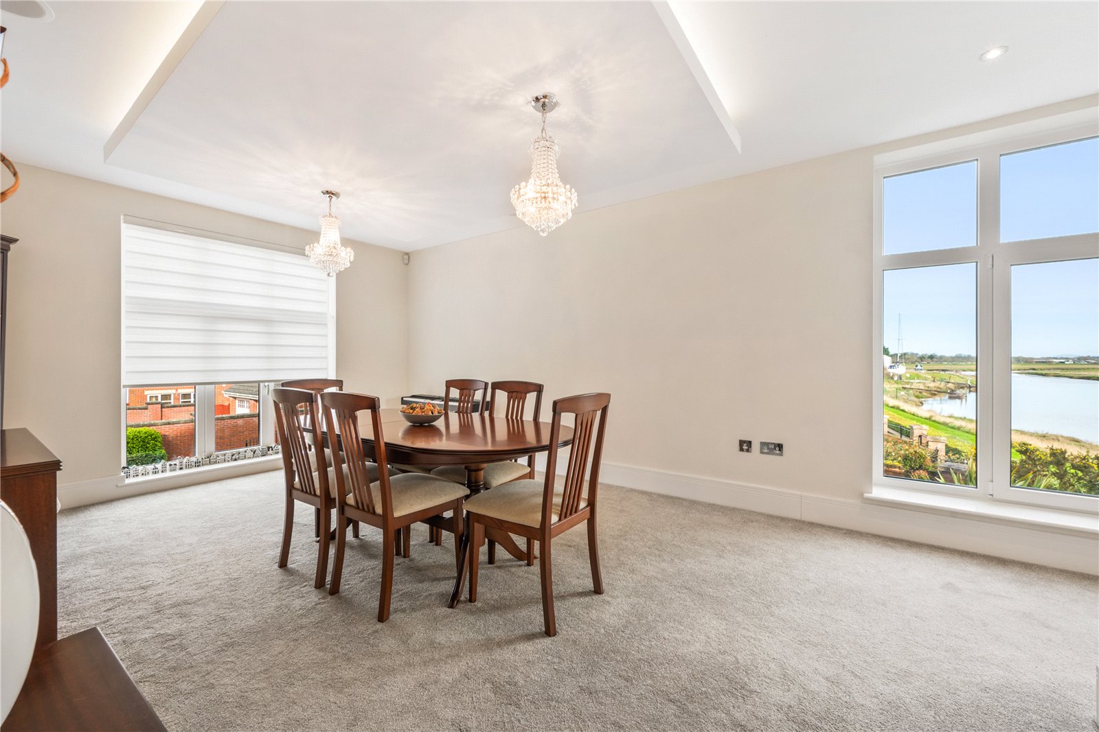The dining room sits adjacent to the kitchen, an ideal layout for hosting perhaps some fabulous dinner parties or Christmas dinner. This room enjoys views to across to the Ribble Estuary. The study is also on this floor and has a range of Sharps fitted furniture, ready for the next purchaser to work from home.