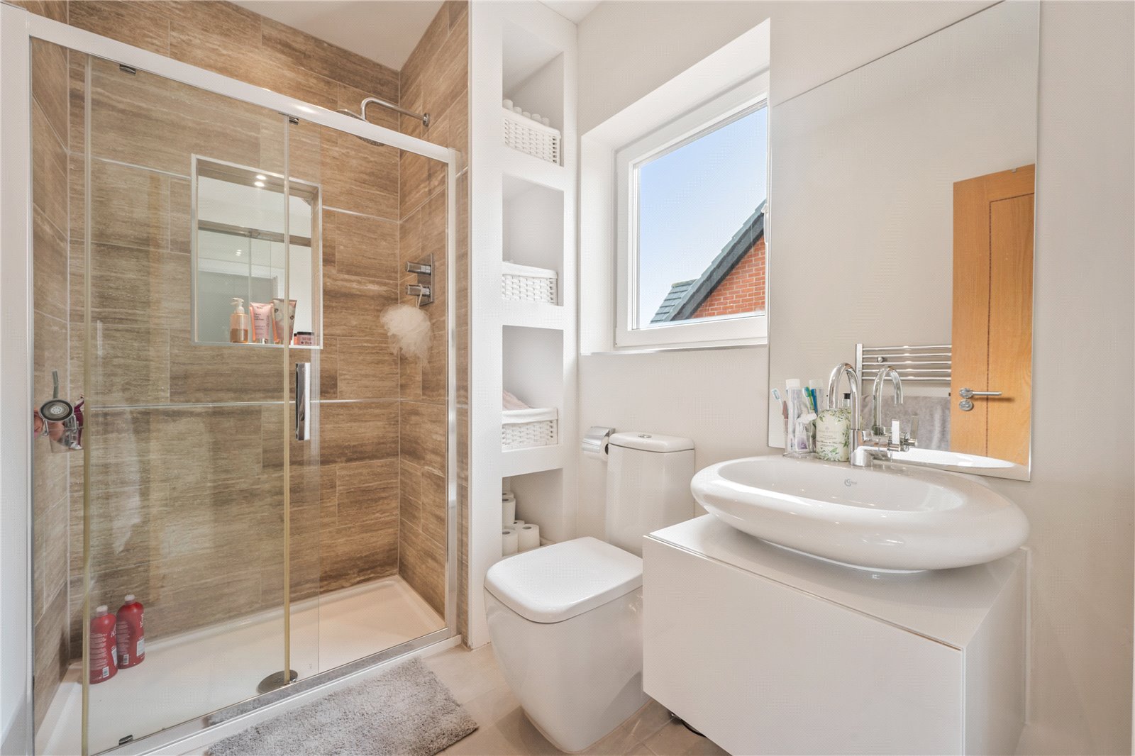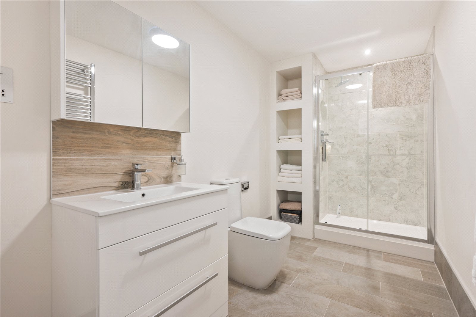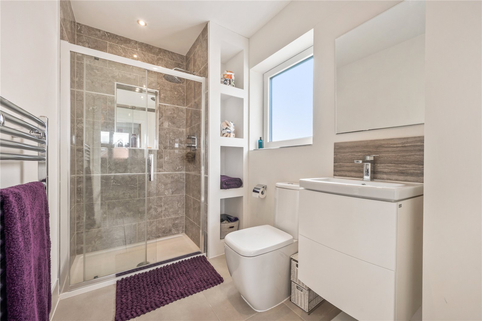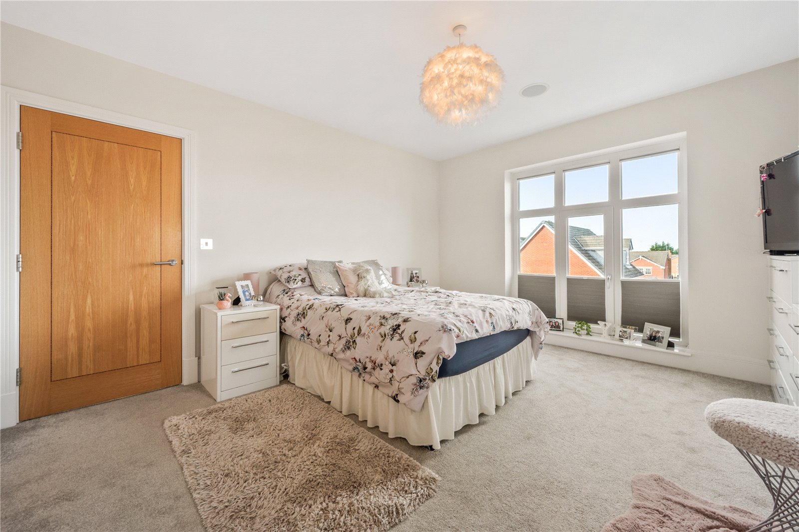 Bedroom two also sits on this floor which again is complete with an en-suite featuring a shower, wash hand basin set within a vanity unit, WC and heated towel rail. There is also a substantial walk in wardrobe/dressing room/toy room, the choice is yours on how you best use this fabulous space. This room is also complete with blackout blinds and newly fitted ‘Sharps’ built in furniture fittings.