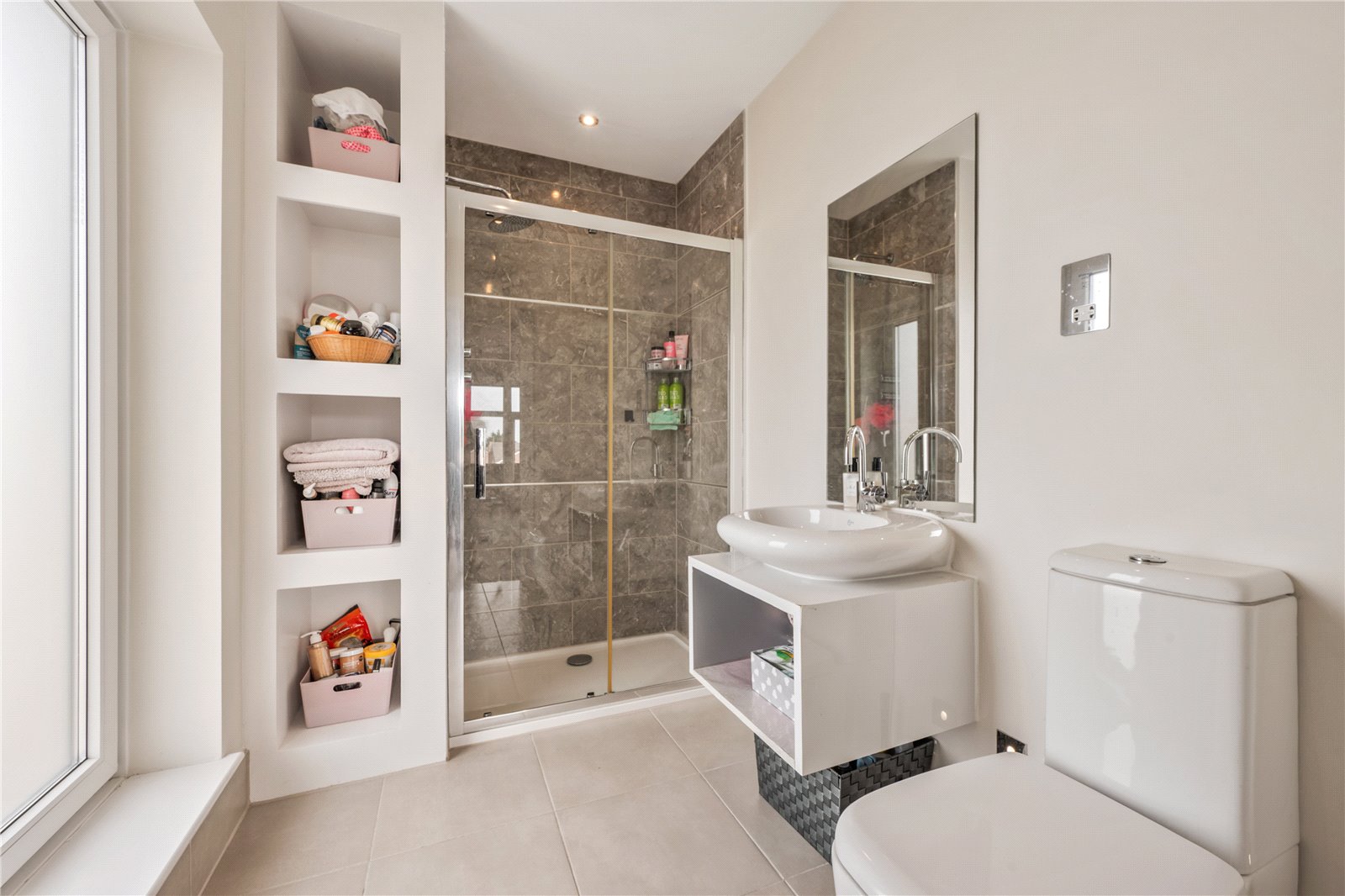 The shower room is usefully located on the lower ground floor, the perfect place to shower after exercise and a great facility for teens sleep overs when used in conjunction with the reception room on this floor! There is a walk in shower, wash hand basin and WC..