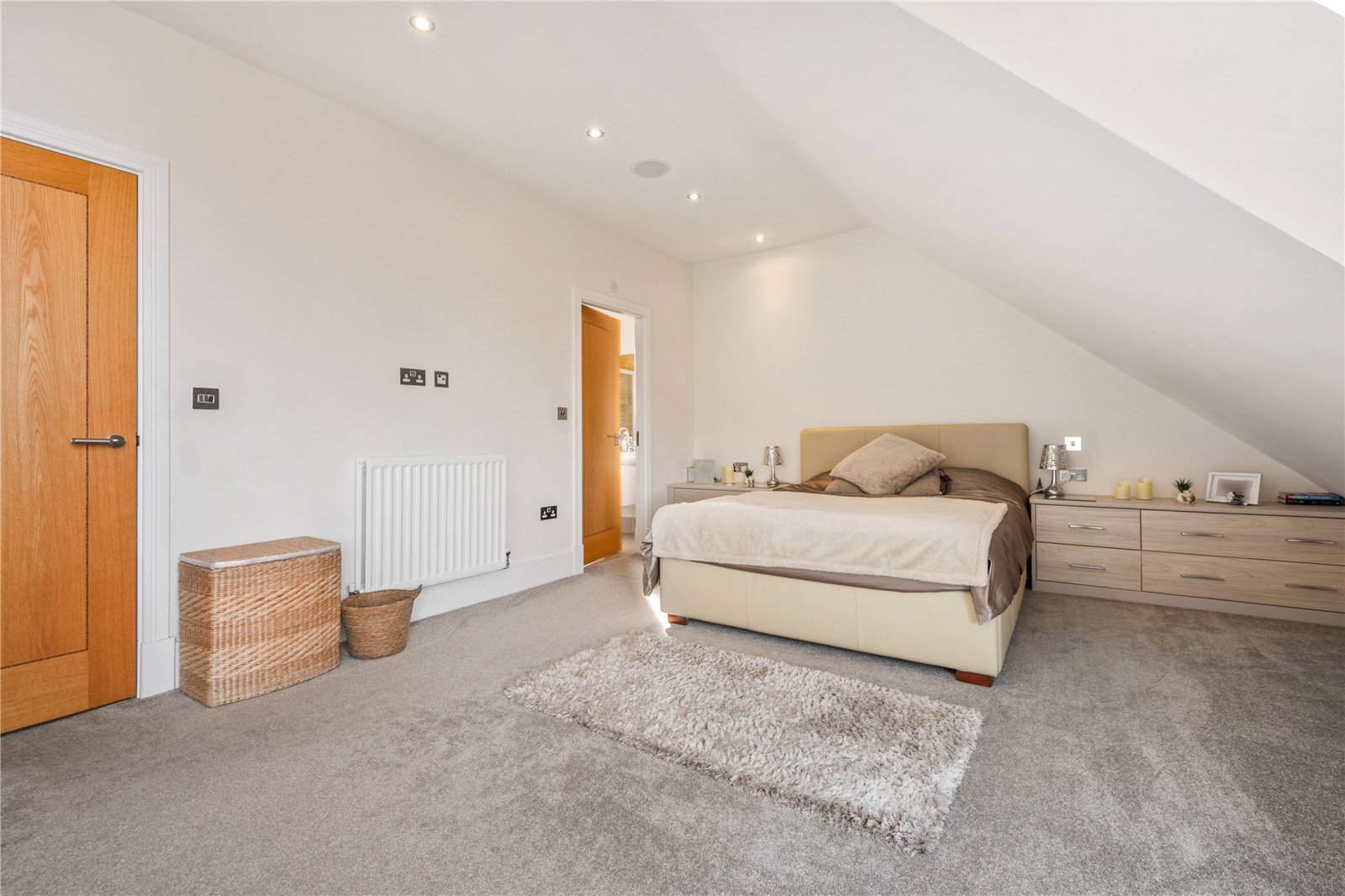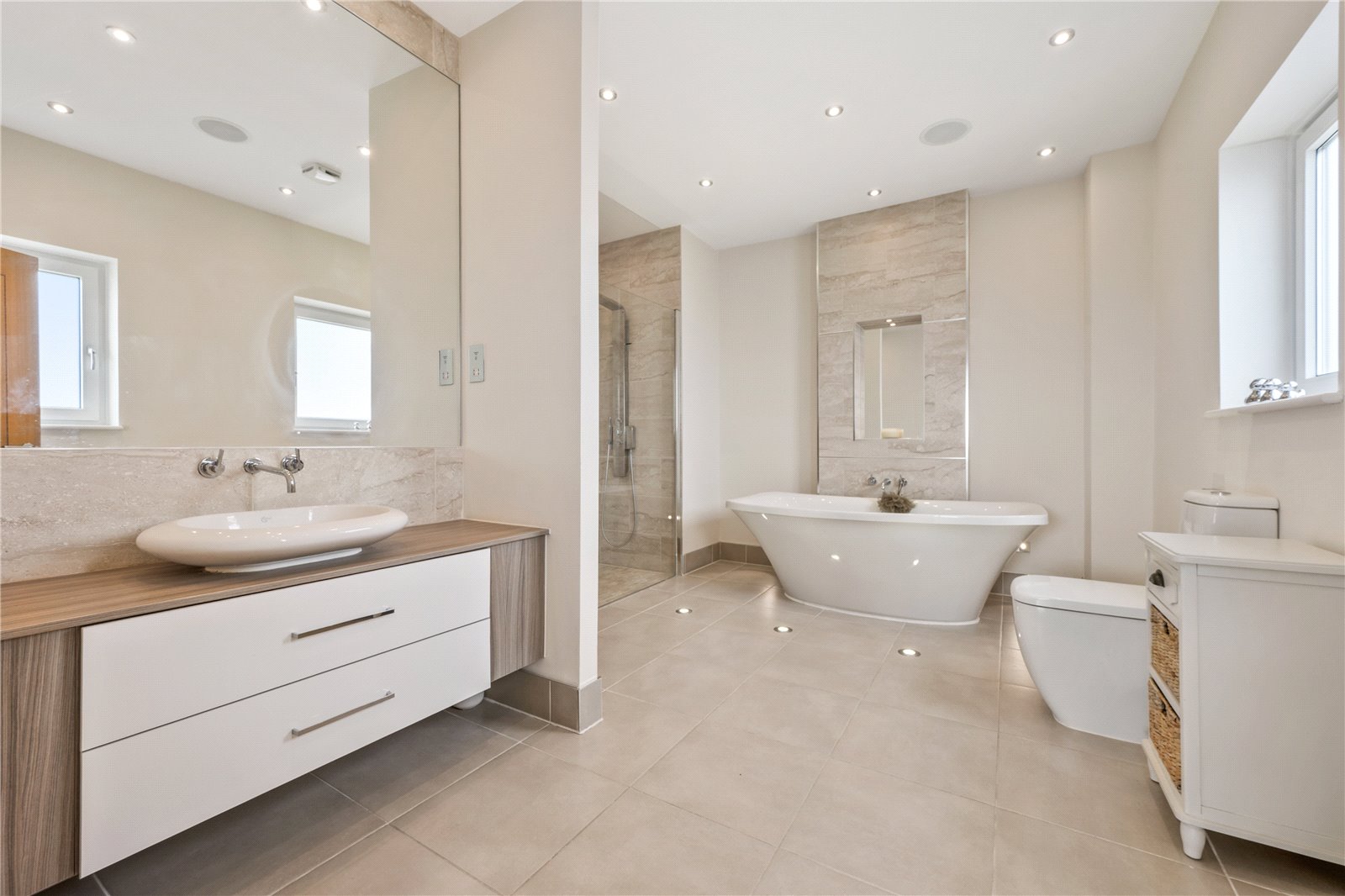The elegant ensuite completes this fabulous bedroom suite and features a large double ended bath, wash basin set in within a vanity unit, large wet room style shower, WC and a heated towel rail.