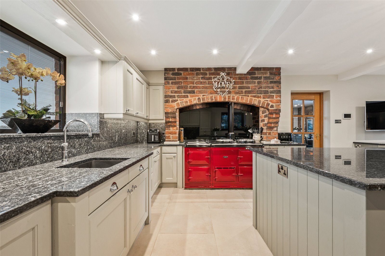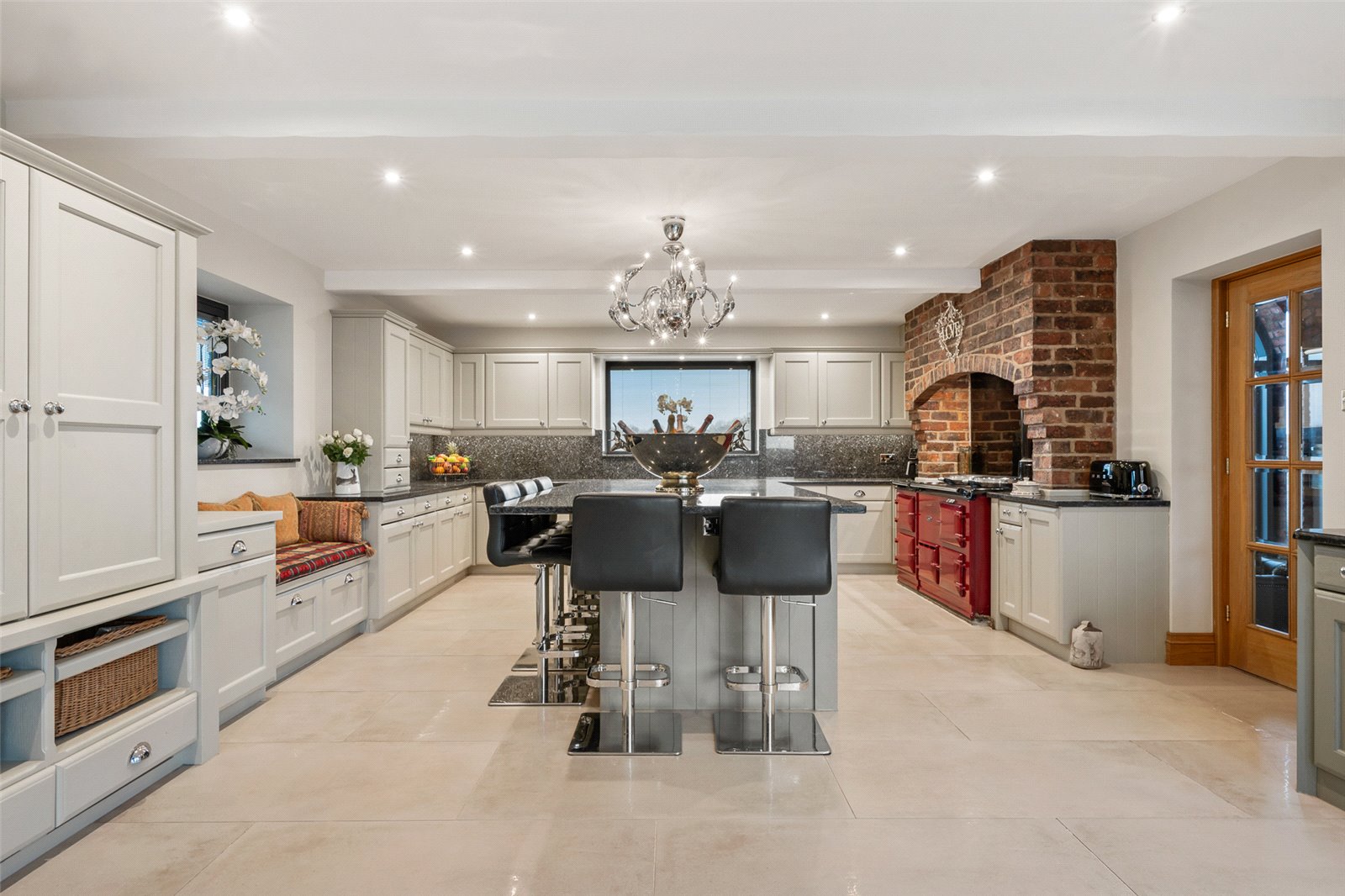 The beautiful kitchen is by Carl Josef and includes a range of wall and base mounted units for the central island to include a breakfast bar, the work surfaces are granite. A mains gas fired Aga is set in an attractive brick feature giving a warming feeling to the room. Integrated appliances include two fridges, dishwasher, microwave, Quooker tap to include sparkling water and boiling water functions.