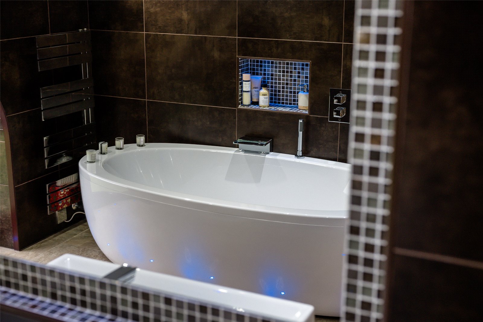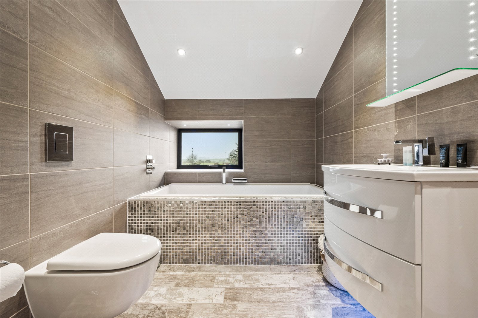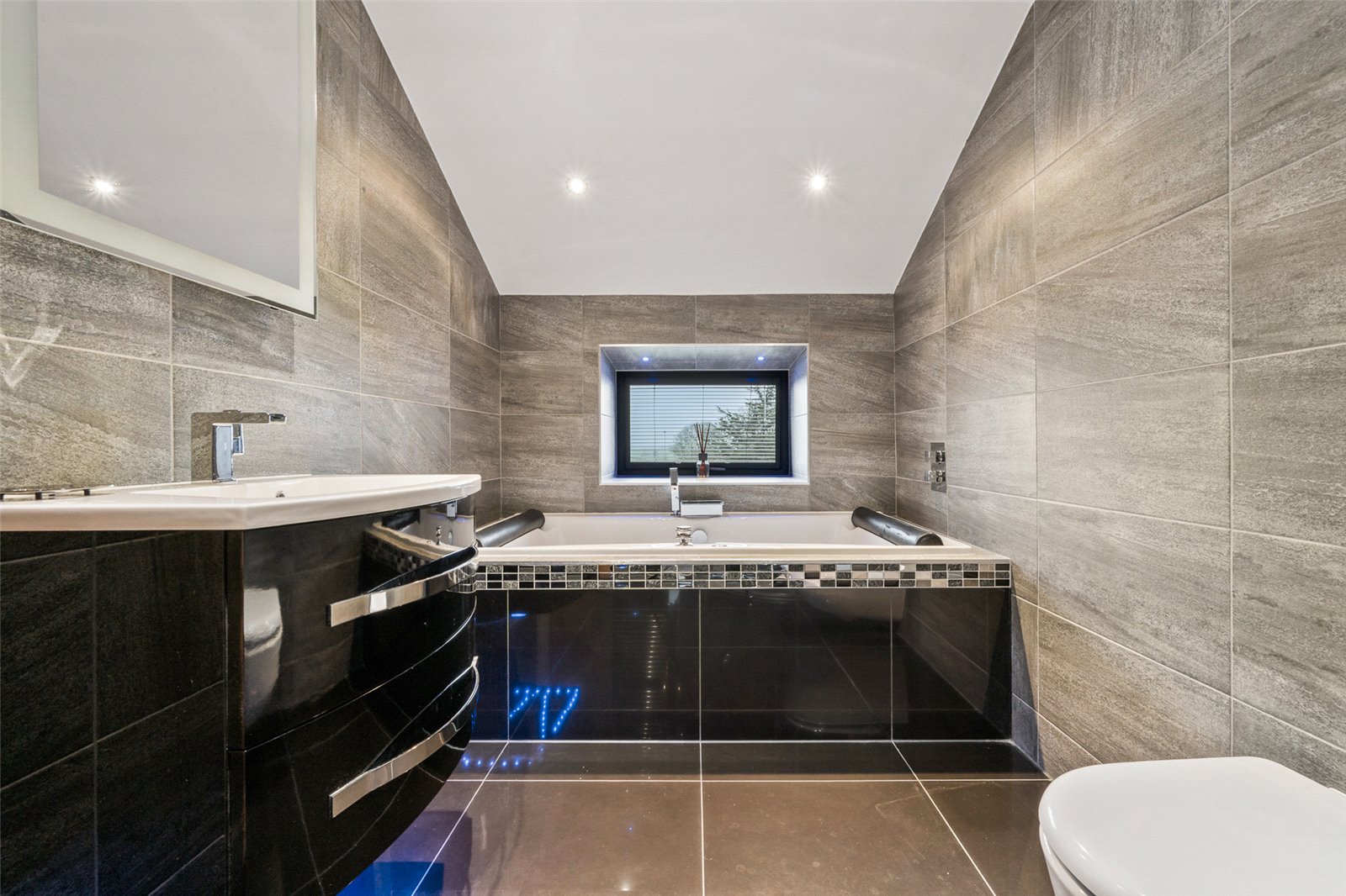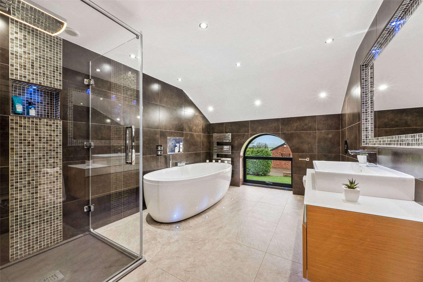 Bedroom 2 has views out to the rear of the property and includes an ensuite which has a double ended spa bath, separate shower, wash handbasin set in a unit, wall mounted WC and heated towel rail.