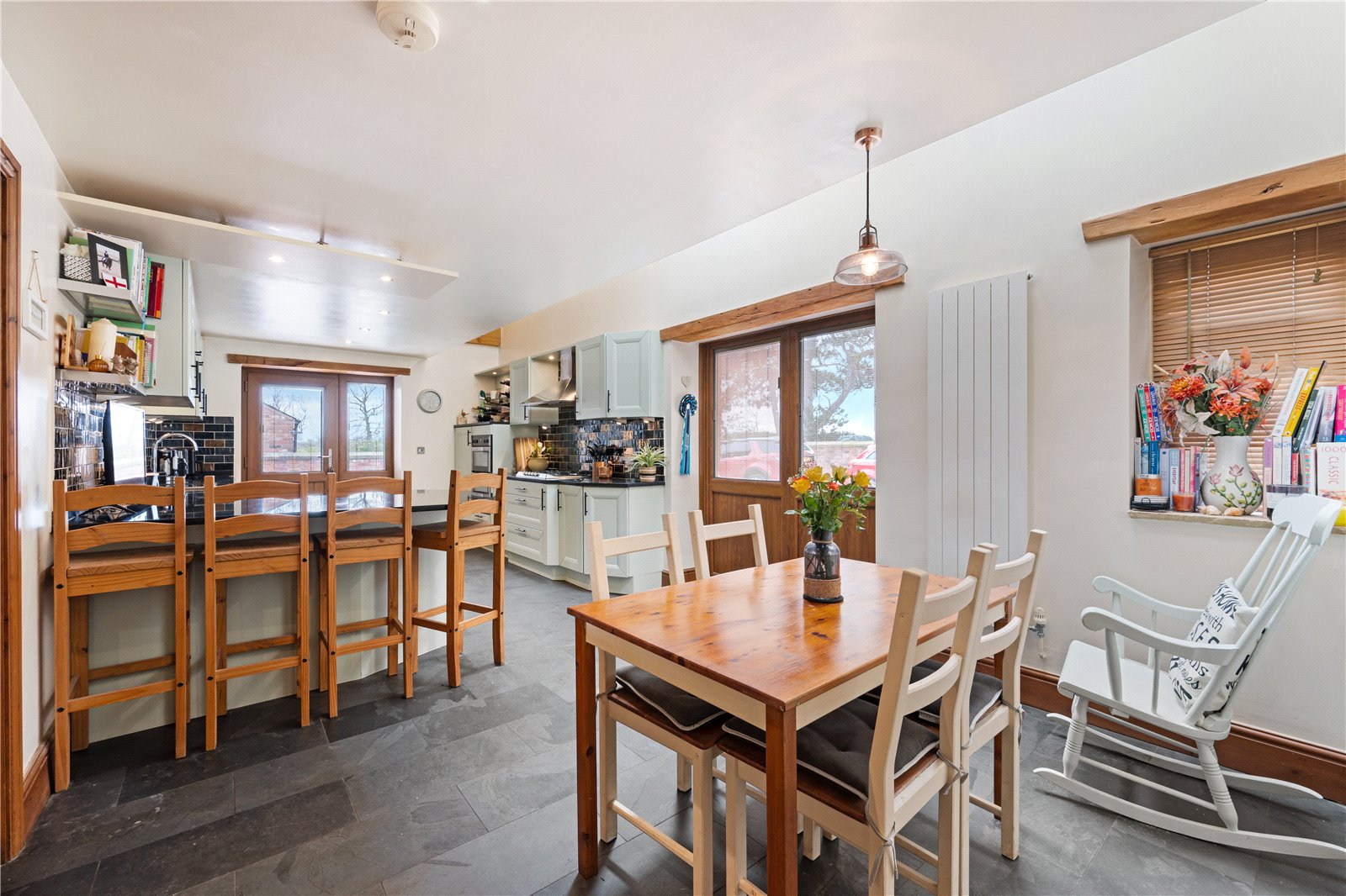 With a welcoming feel, this beautiful barn conversion oozes warm and cosy, yet is positioned to enjoy the superb views and spacious gardens. The property boasts many character features to include sandstone sills, feature windows, vaulted ceilings and exposed beams. There is a spacious entrance hall, dining kitchen, utility, 3 reception rooms and conservatory, 4 bedrooms and 5 bathrooms.  There are spacious gardens with a paddock beyond along with a further communal paddock. The house also has a double garage. The current vendor has made a range of alterations to include installing fitted wardrobes, painting the kitchen, improving the garage and has continued to maintain this property.