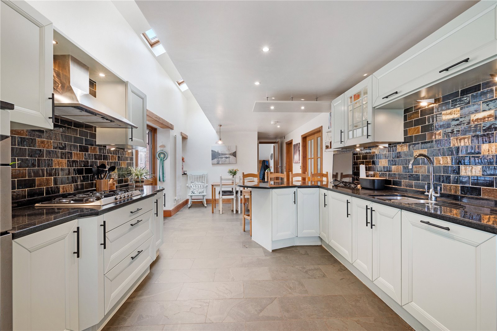 The centrepiece to the house is likely to be the dining kitchen, recently painted, this well-presented kitchen has a relaxed feel.  There are granite worksurfaces and a range of integrated appliances to include 5 ring gas hob with an extractor, double oven, low level freezer, full length fridge, dishwasher.  A 1.5 bowls sink and drainer is included.  There is a part vaulted ceiling with Velux, ensuring that barn feel continues.  The utility room has a range of units and a point for a washer and drier . The utility is also home to the boiler.