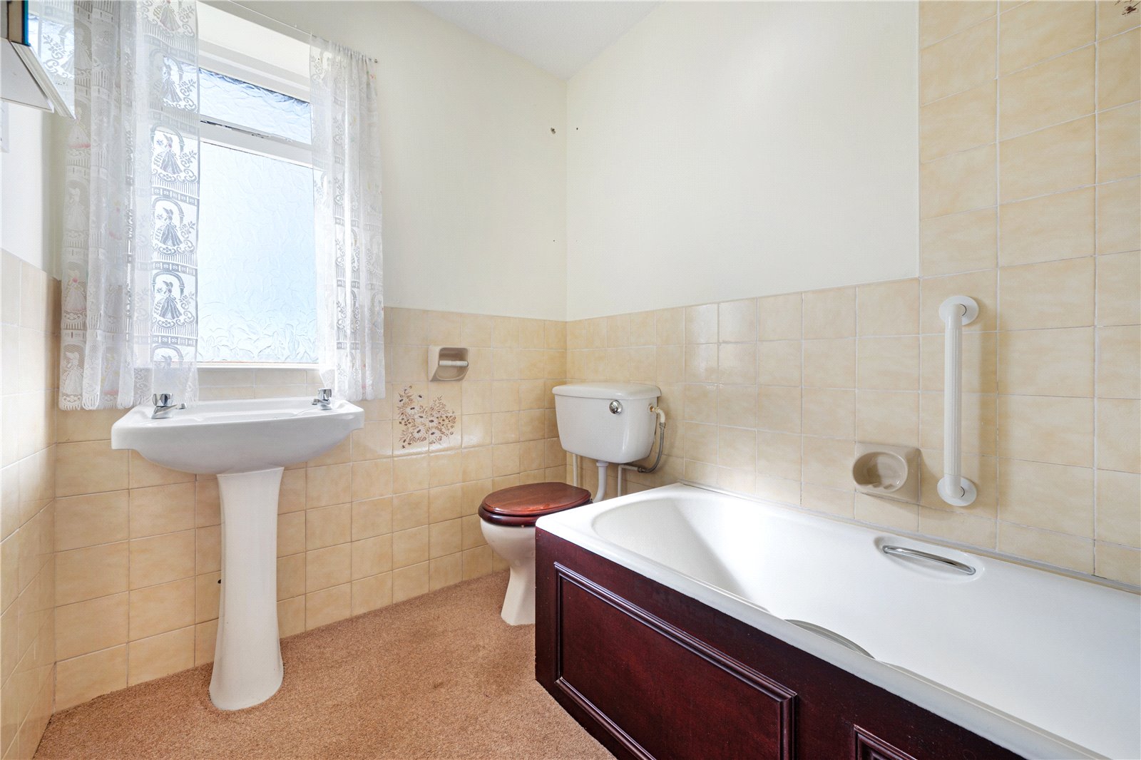 Completing the accommodation is a three-piece family bathroom, finished with matching wooden features and comprising a bath with electric shower over, a pedestal wash basin, and a WC.