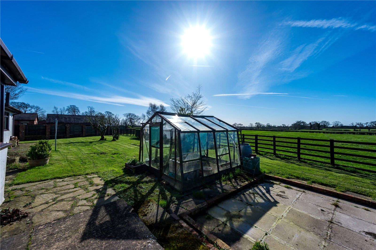 Tucked away along a shared country lane off Whittingham Lane, the property is approached via a gated entrance that opens onto a stone driveway and an attached single garage. Beyond the house, a generous wraparound lawned garden enjoys uninterrupted views across open countryside to both the front and rear, and is complemented by several timber sheds and a greenhouse.